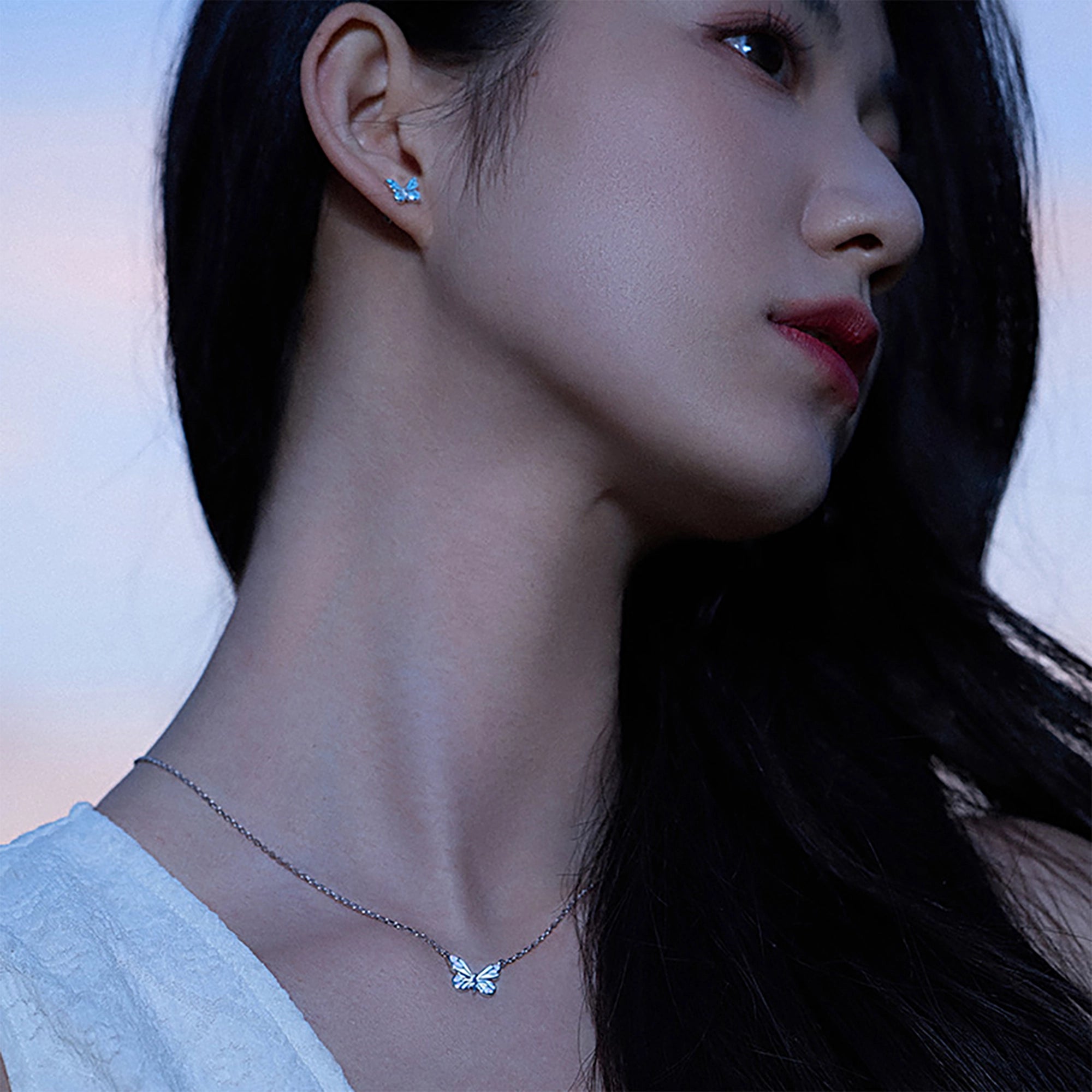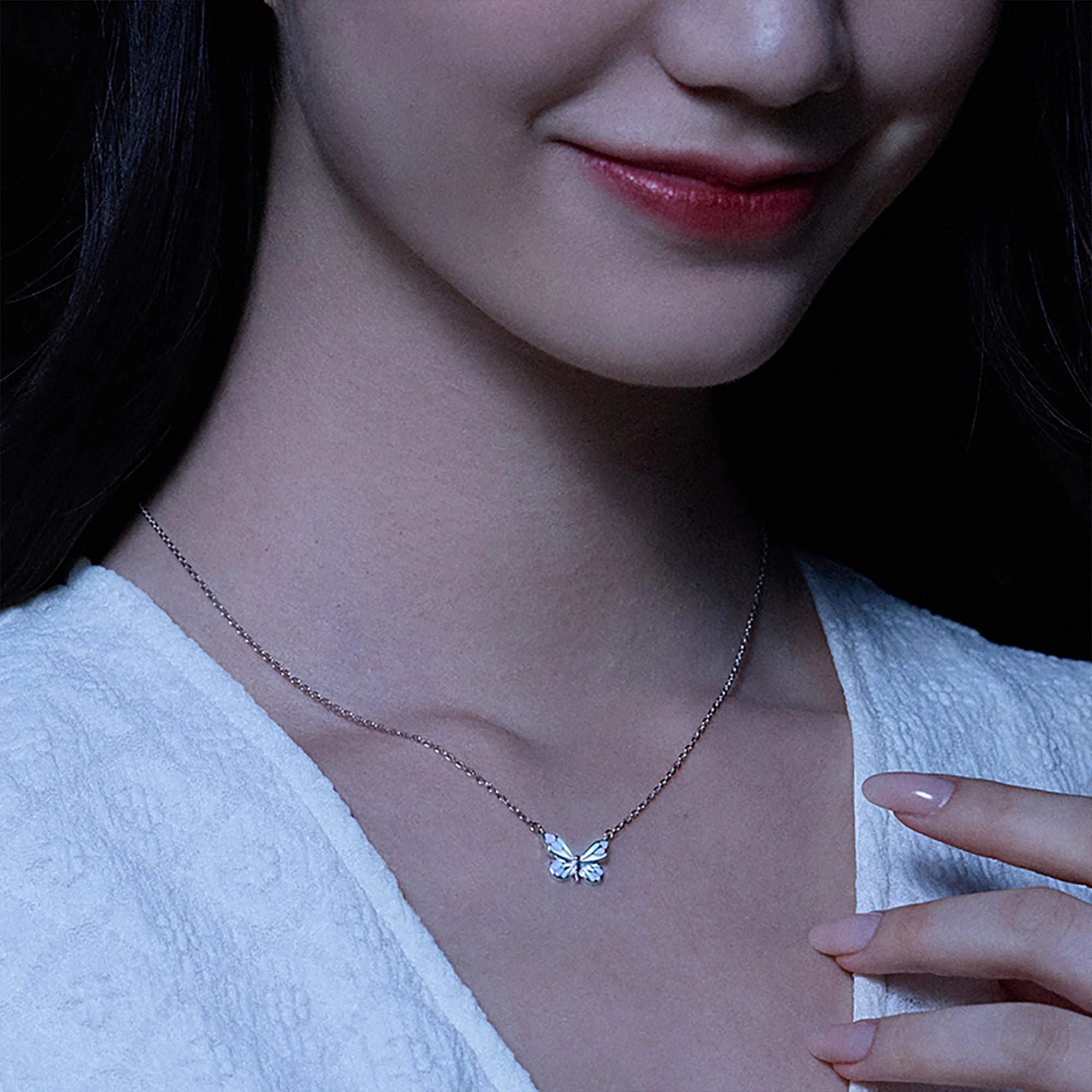 FANCIME "Starlight Butterfly" Luminous Enamel Sterling Silver Necklace