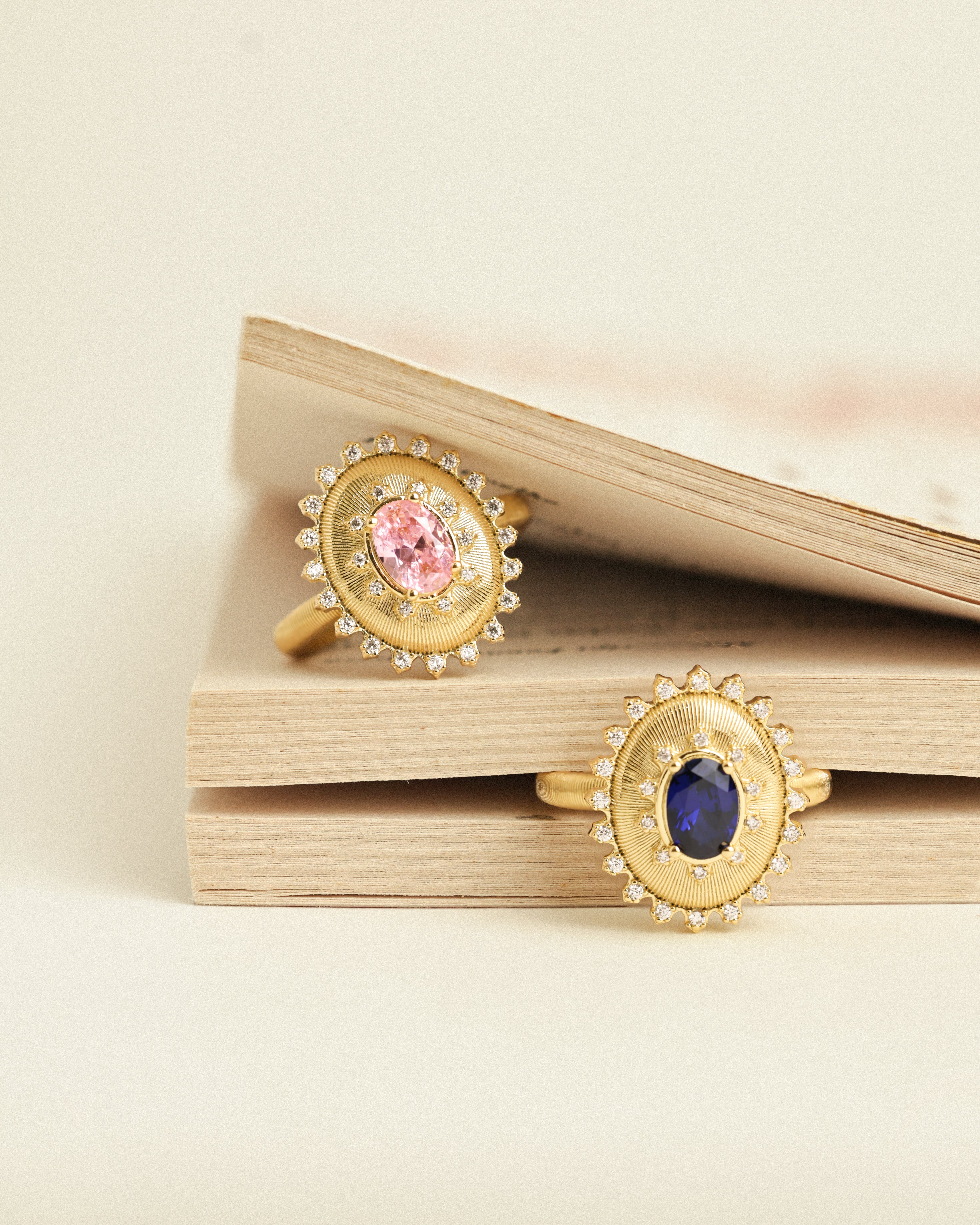 Inspired by vintage elegance, the Retro Romance collection blends intricate details, warm gold tones, and vibrant birthstones. Each piece is a timeless keepsake—celebrating love, cherished moments, personal stories, and the beauty that never fades.