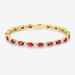 "Glamour Radiance" July Birthstone Fancy Cut Tennis Ruby Sterling Silver Bracelet