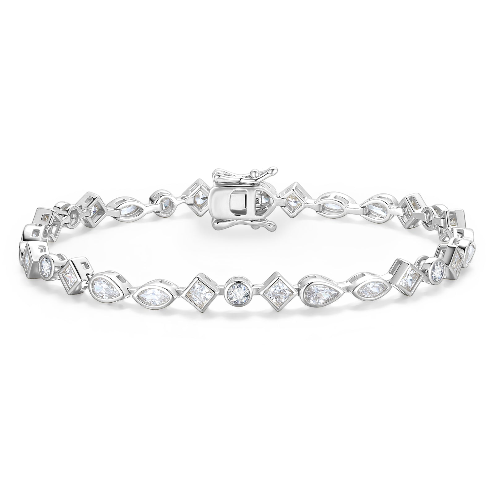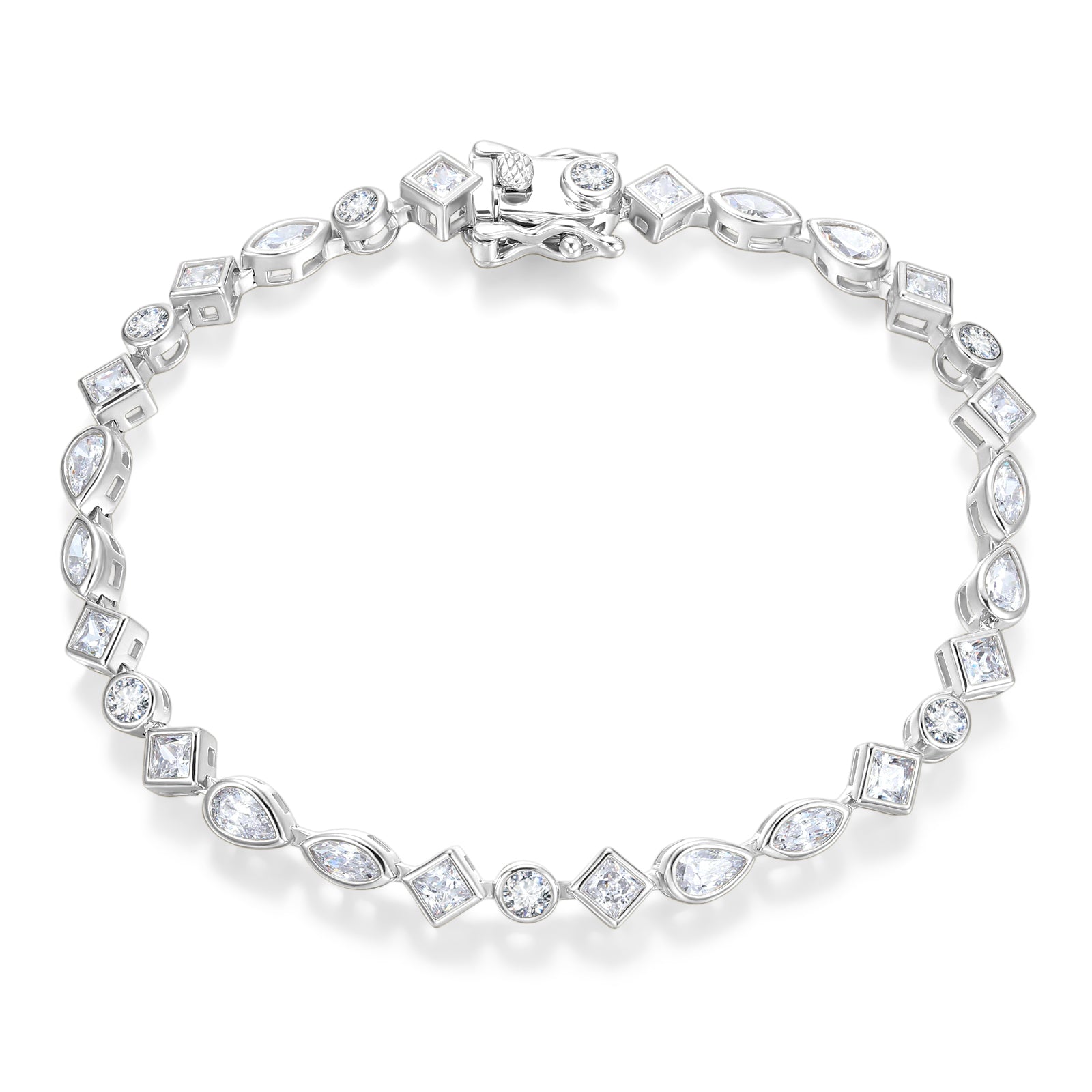 FANCIME "Lumina Trio" Geometric Sterling Silver Tennis Bracelet