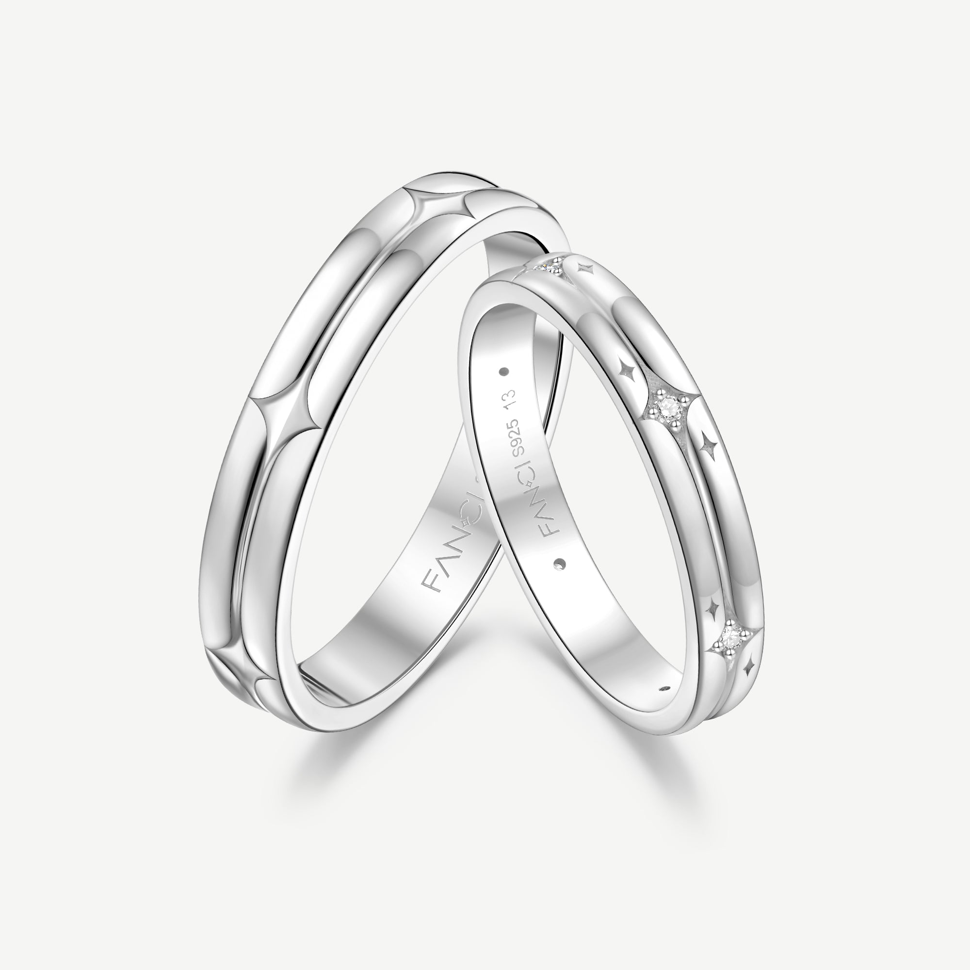 FANCIME "Starlit Melody" Couples Promise Sterling Silver Star Matching Rings