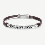 FOOTPRINT 925 Sterling Silver Mens Leather Bracelet - Sizing