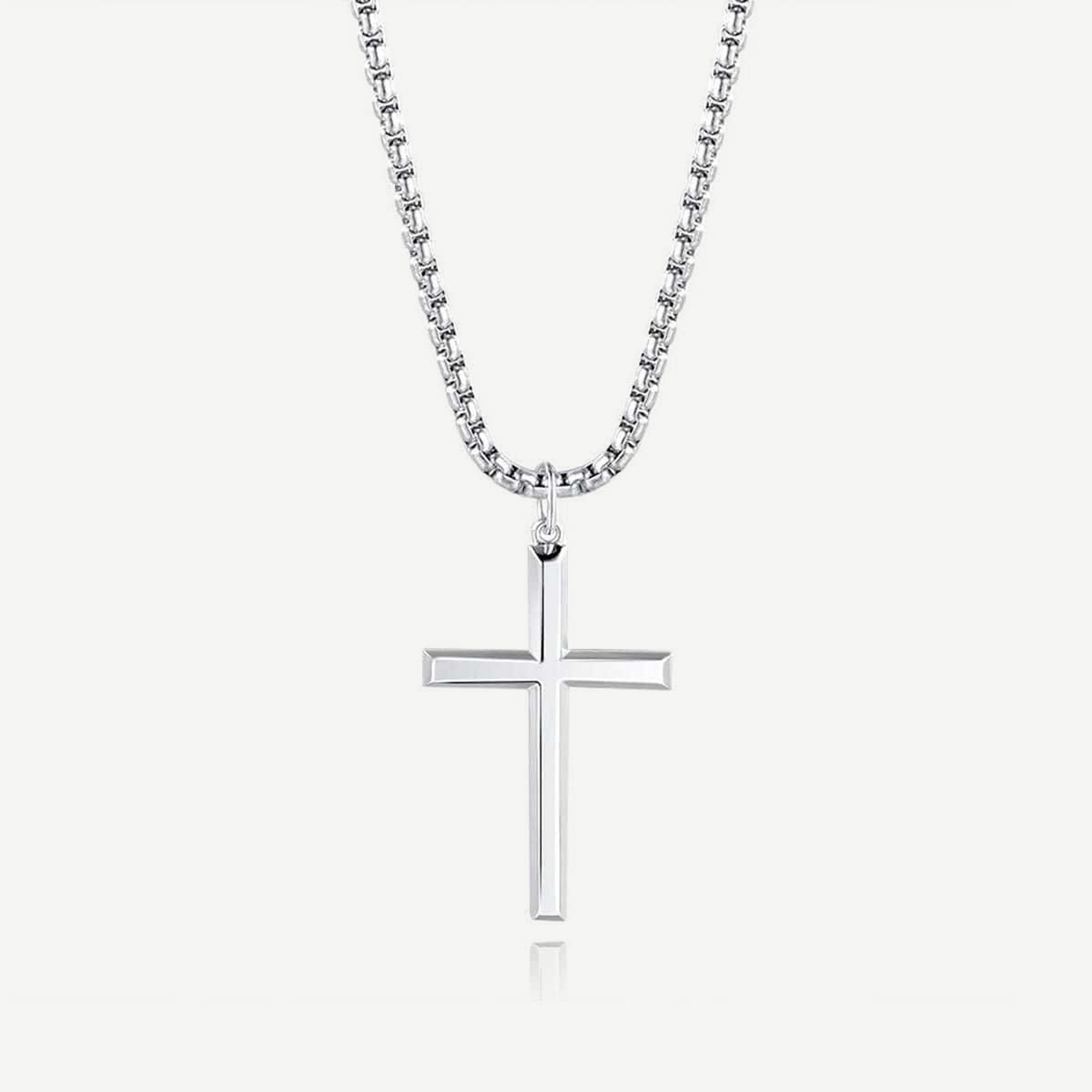 FANCIME Mens Plain Polished Cross Sterling Silver Necklace