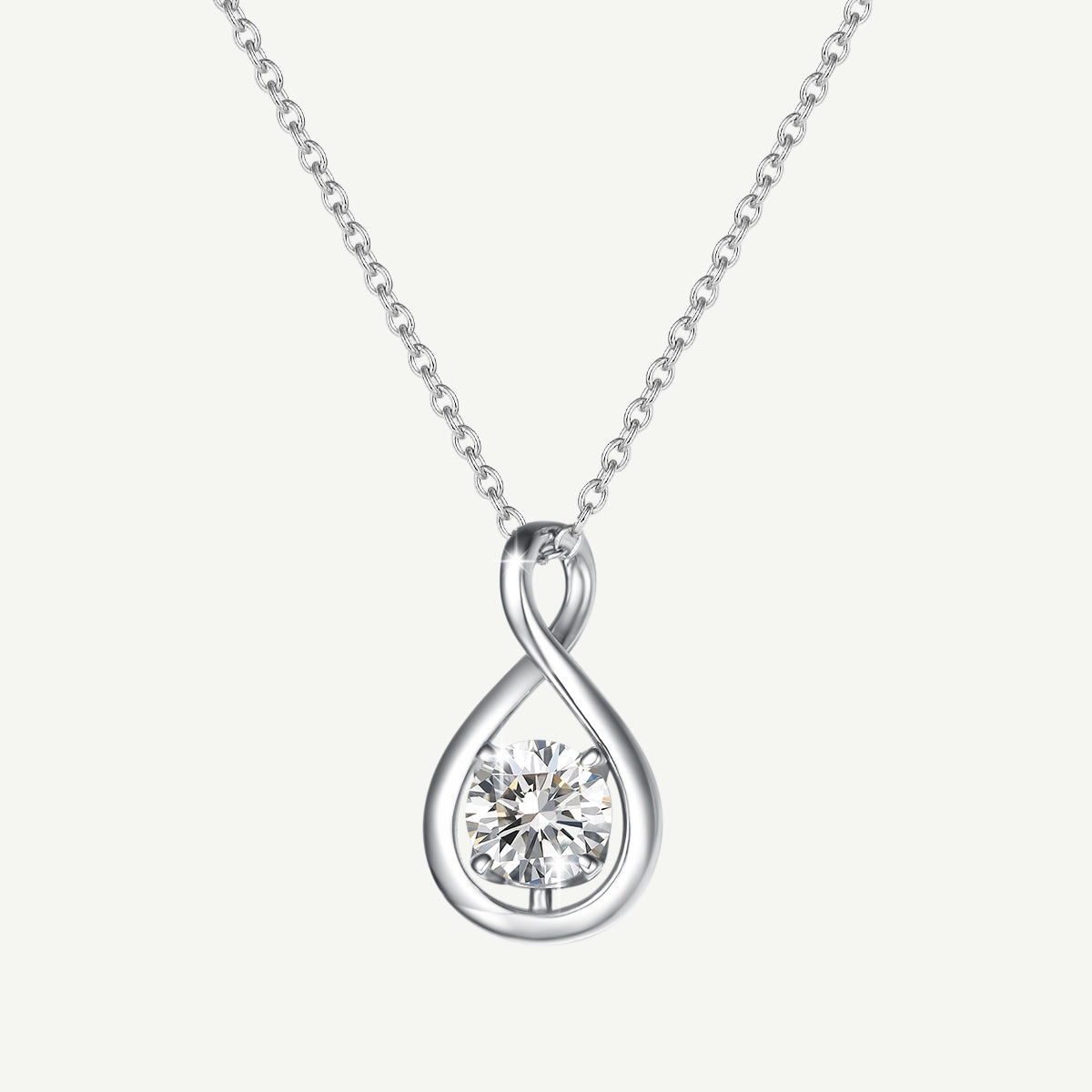 "Infinite Embrace" April Birthstone Cubic Zirconia Stone Infinity Symbol Sterling Silver Pendant Necklace