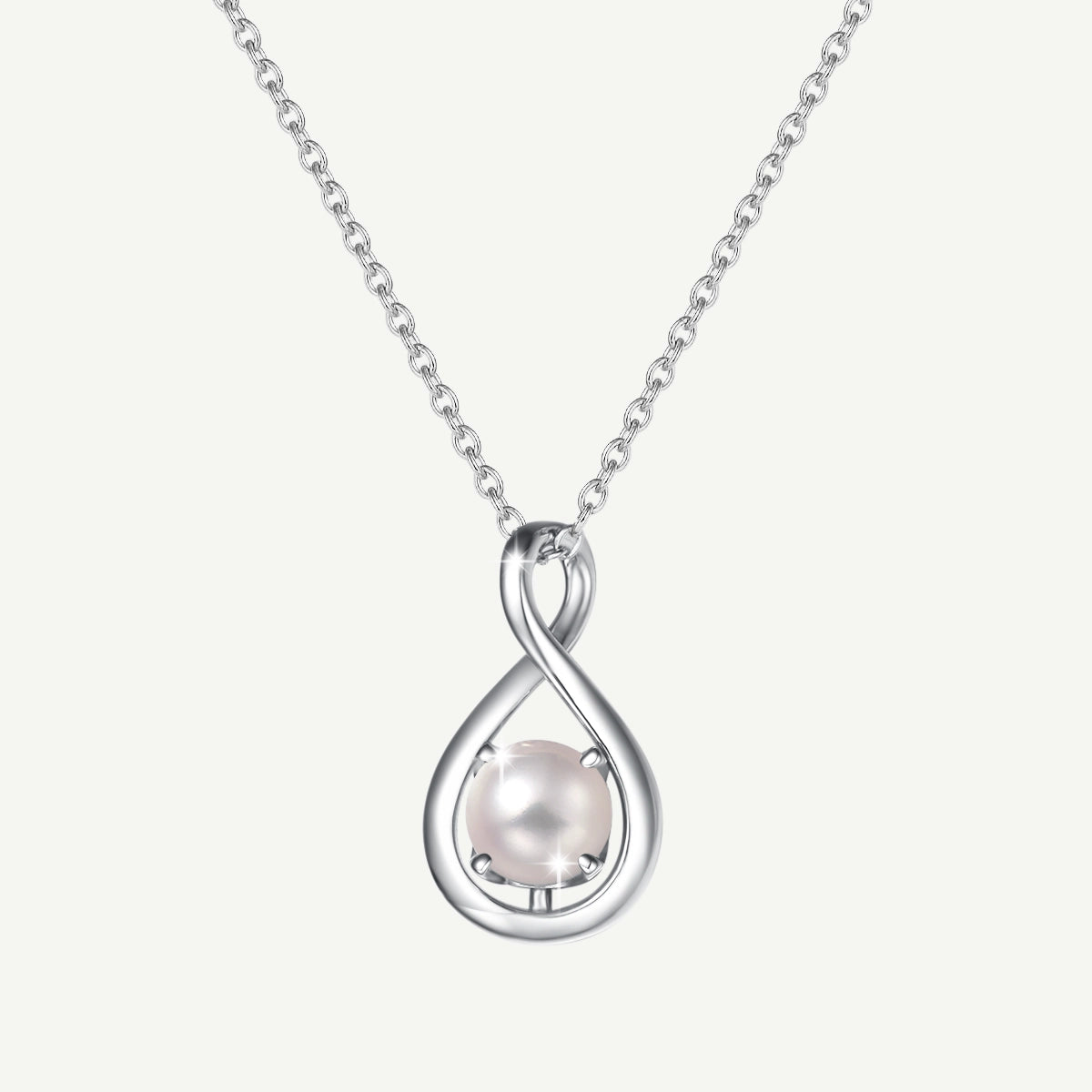 "Infinite Embrace" June Birthstone White Pearl Infinity Symbol Sterling Silver Pendant Necklace