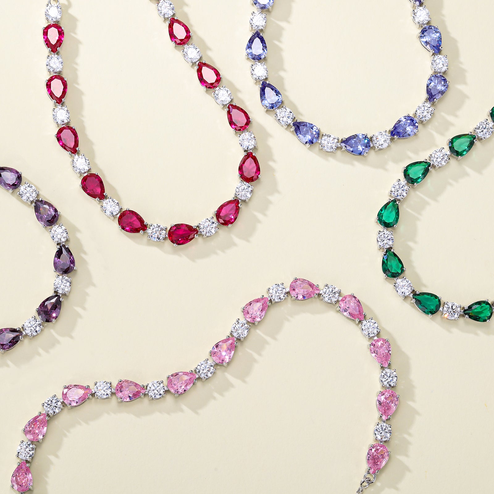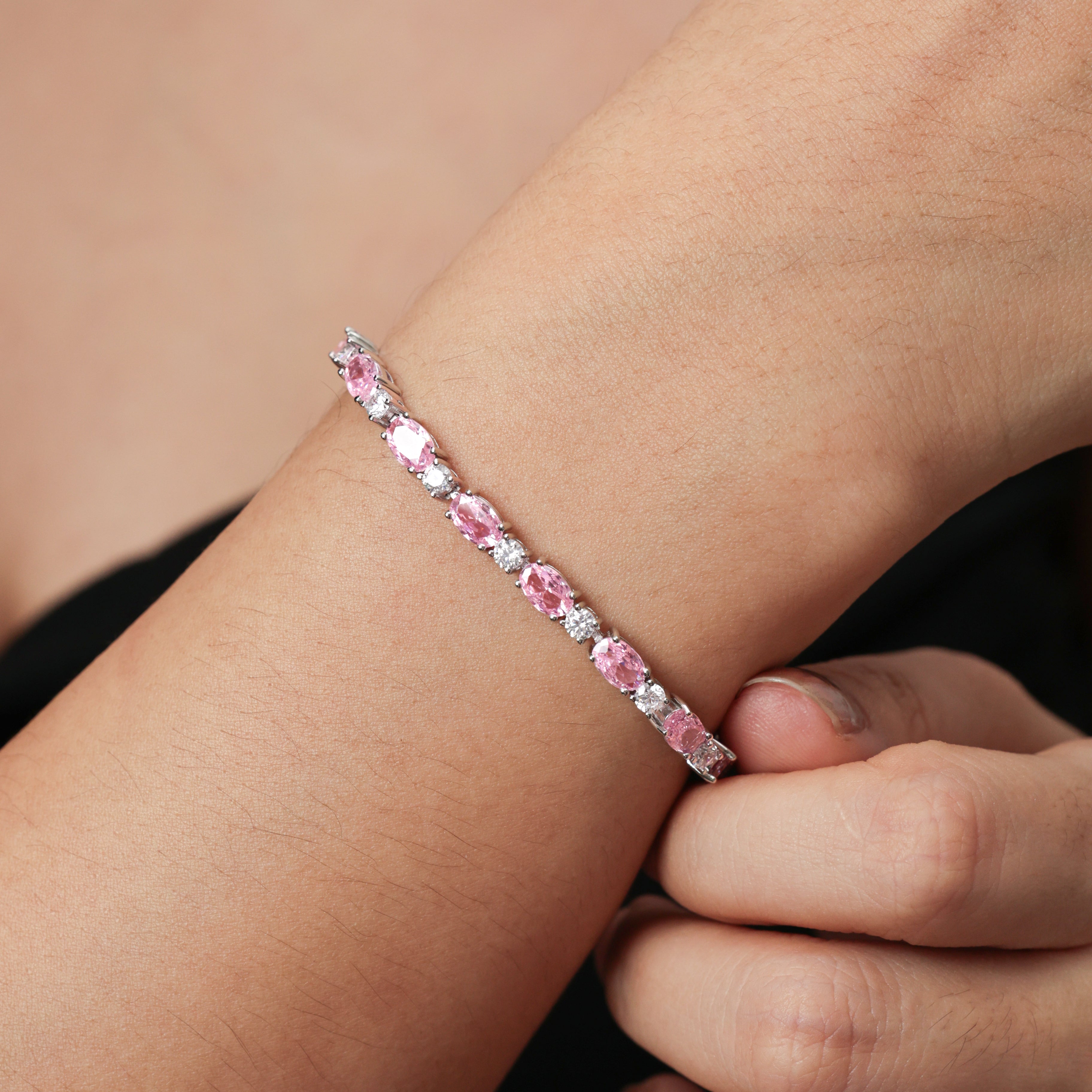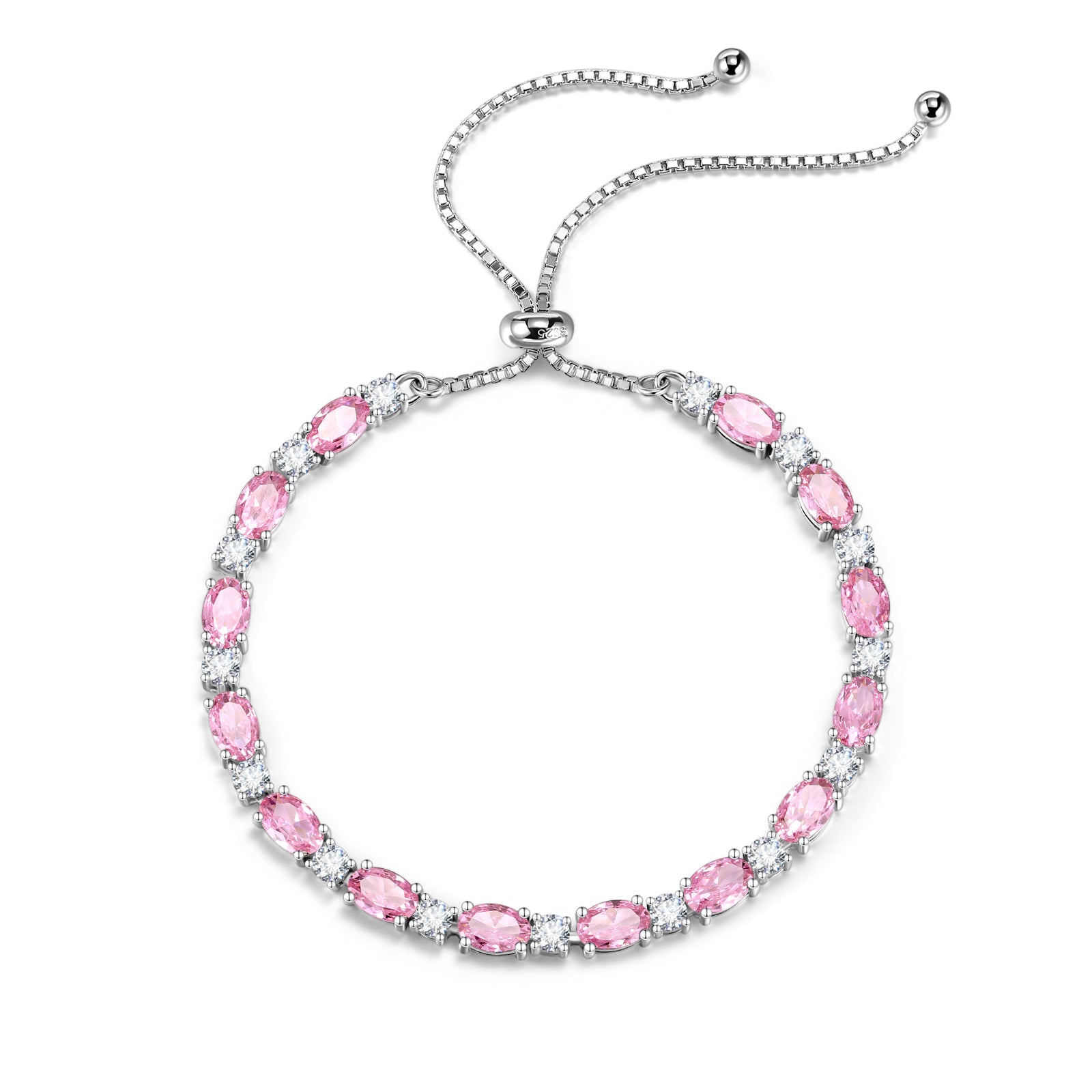 "Glamour Teardrop" October Birthstone Pink Tourmaline Sterling Silver Tennis Bracelet Classic Bolo Chain
