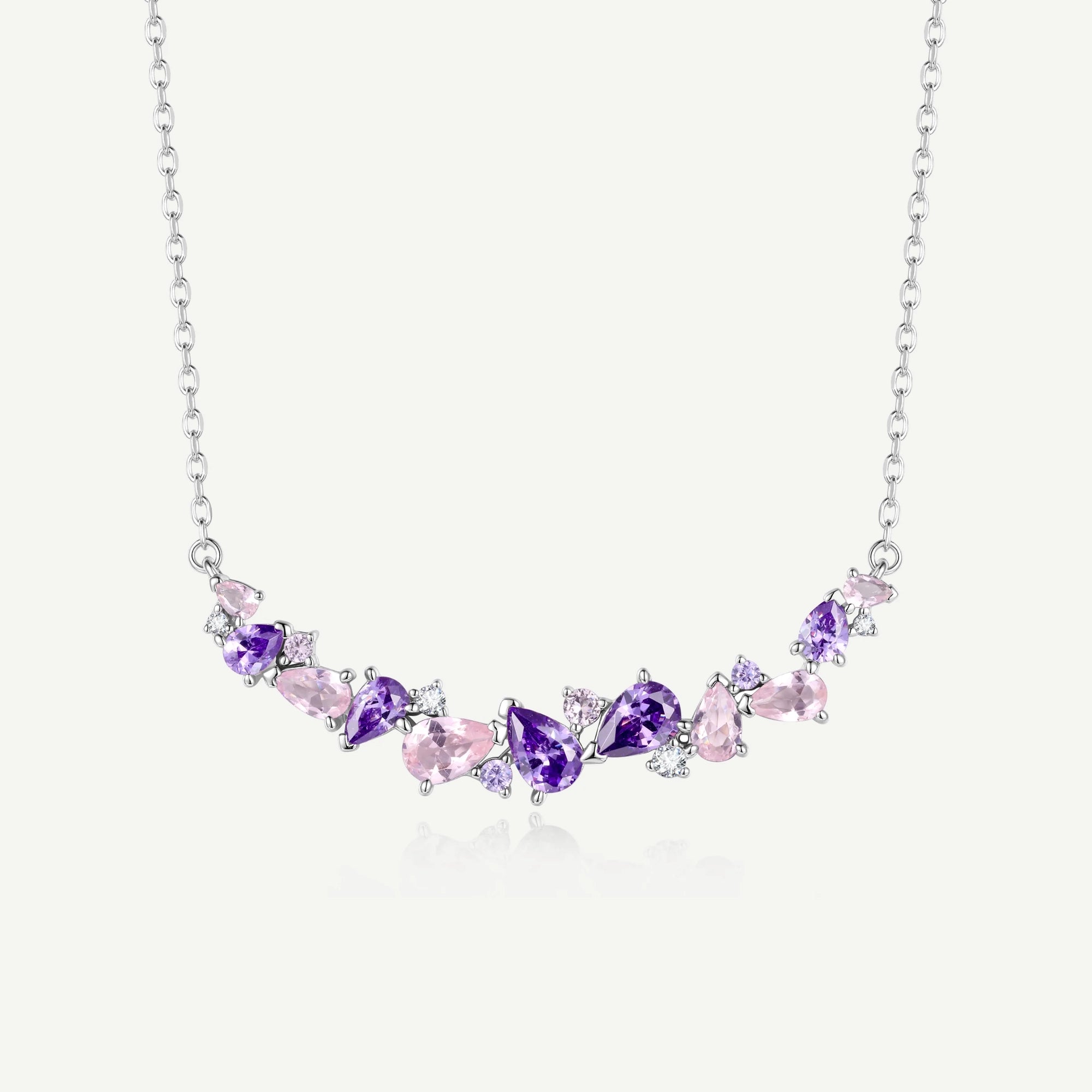 “Wisteria Whisper” Flower Bar Pink Tourmaline Silver Necklace