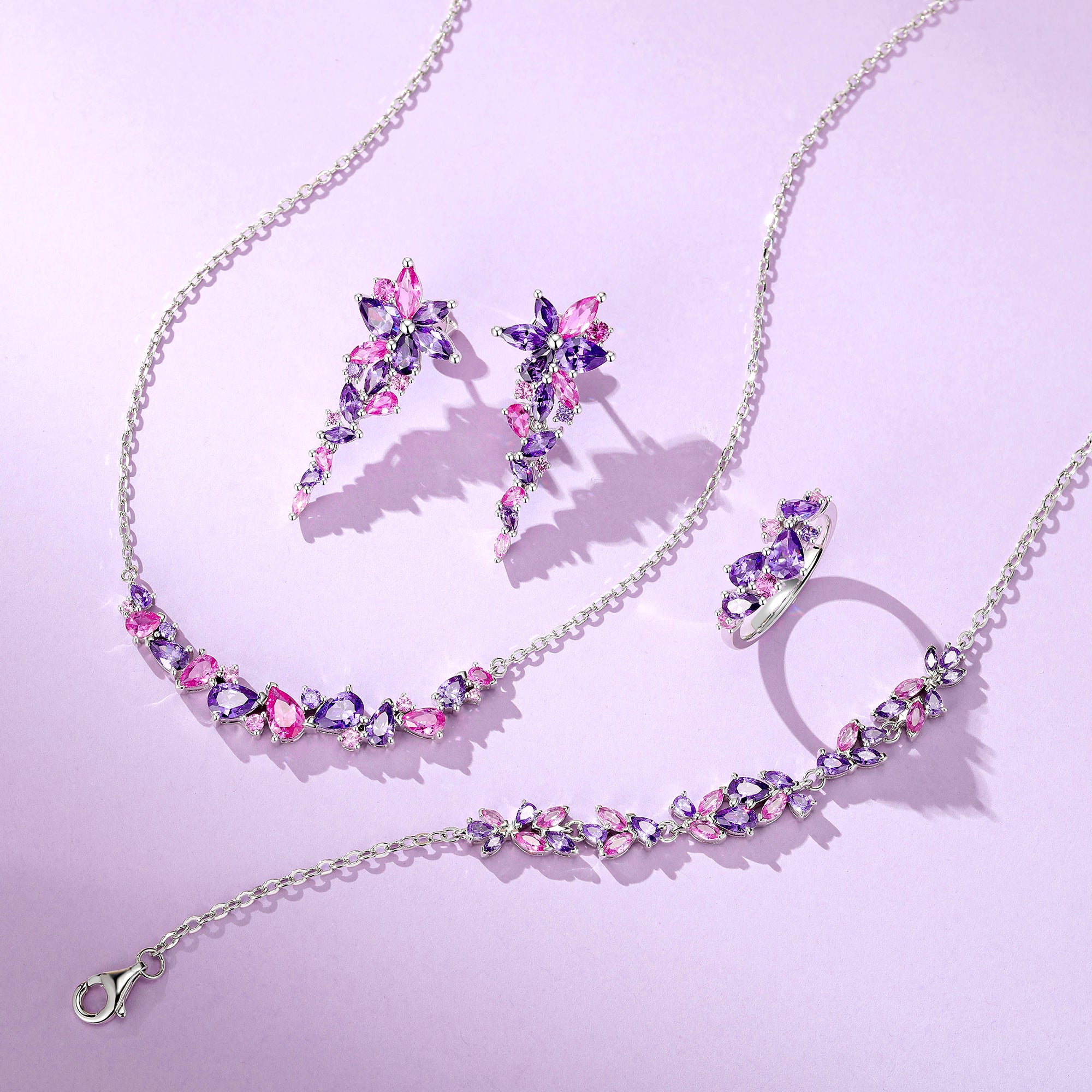 A floral smile nourishes your soul. People believe happiness comes when the Wisteria flower blooms. Wisteria flower is a purple flower symbolizing romance in most cultures. It is a climbing plant that represents the feelings of reluctance between lovers, and the bond between each other.Our jewelry designs follow the femininity of the flower as it sways in the breeze, like an elegant lady swings in her satin silk dress.