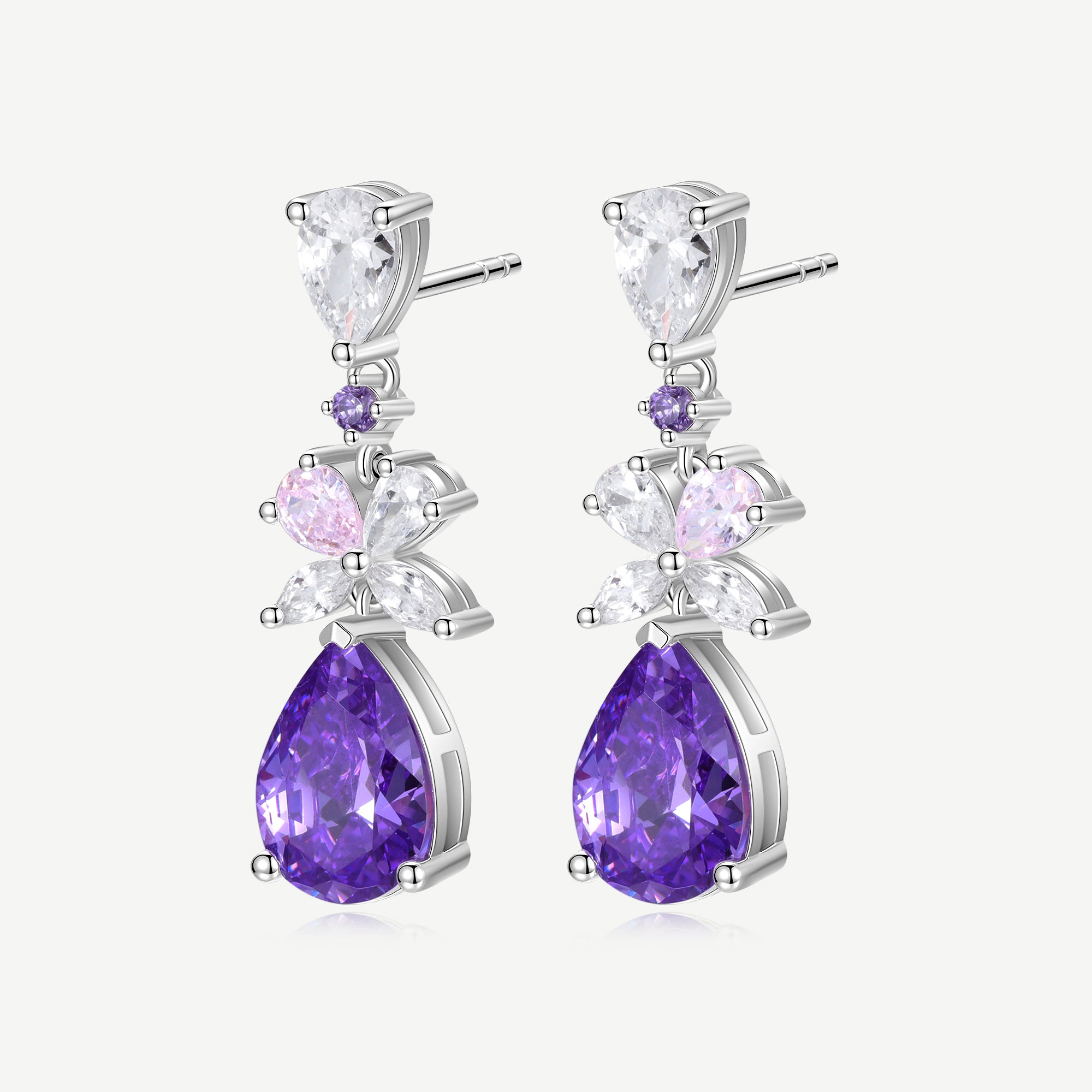 FANCIME "Wisteria Bouquet" Sterling Silver Petal Cluster Drop Stud Earrings