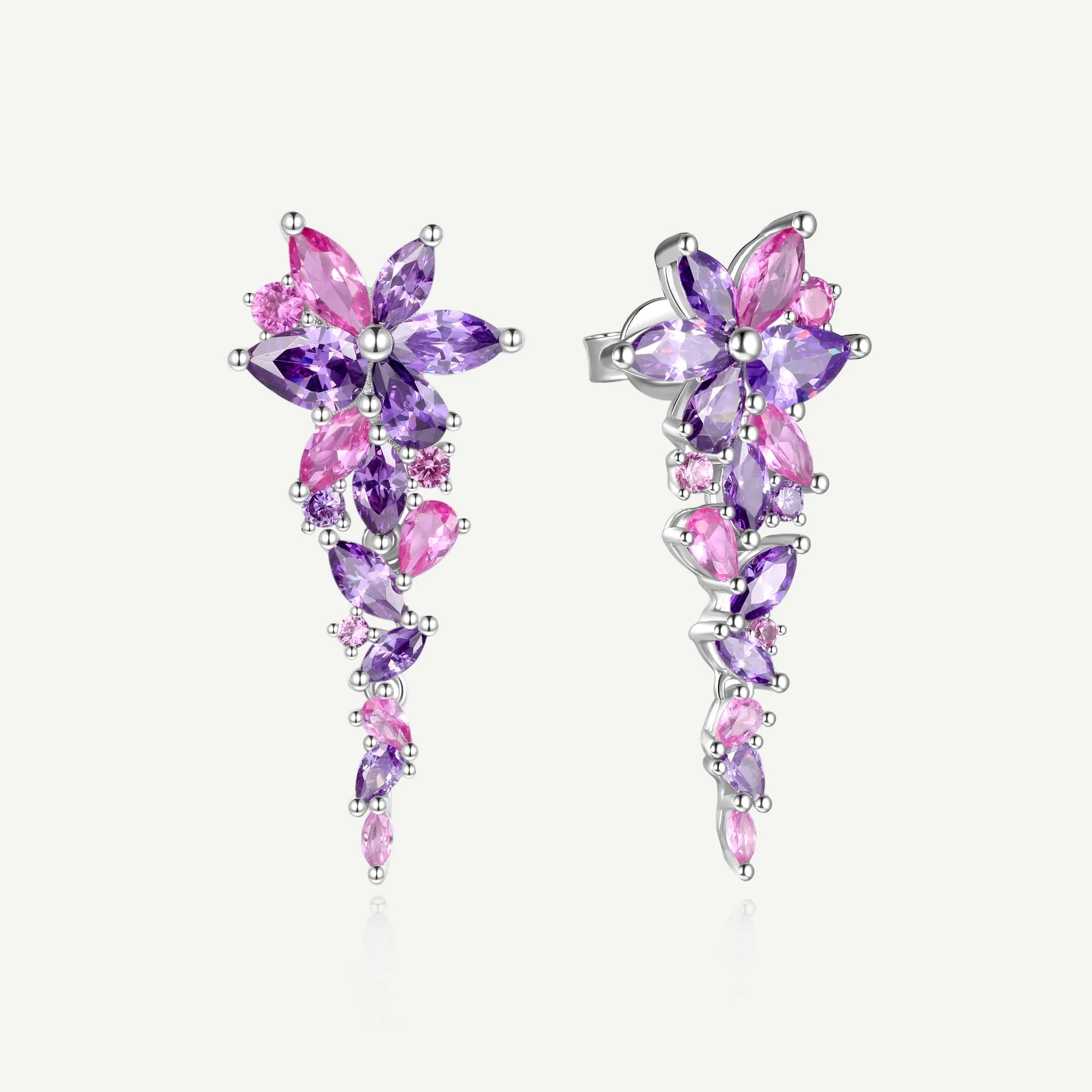 FANCIME “Wisteria Whisper” Flower Drop Sterling Silver Earrings
