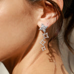 Diese Ohrringe spiegeln die Schönheit eines sternenübersäten Himmels wider und sind ein Spektakel aus herabfließenden Sternen, die sich mit jedem Ihrer Schritte bewegen und eine schimmernde Kaskade himmlischer Schönheit erzeugen, die Ihren unbeugsamen Geist und Ihre strahlende Individualität widerspiegelt.