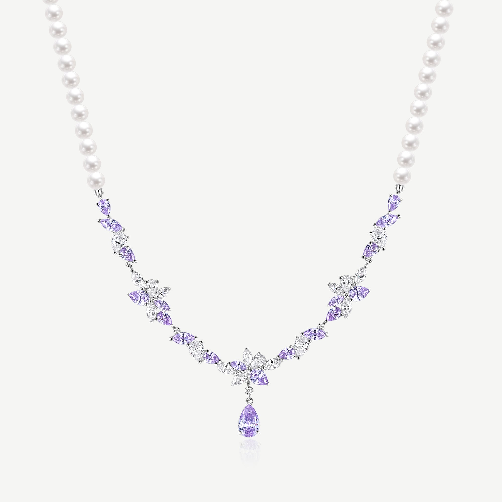 Wisteria Bloom Drop Soft Silver Promise Necklace