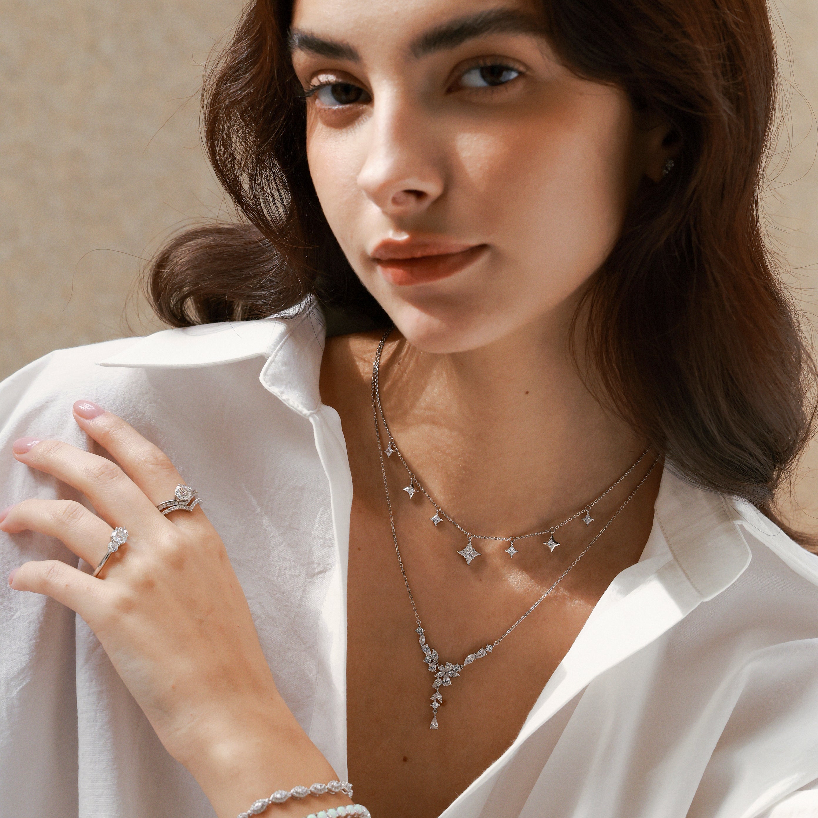 FANCIME "Starlit Dream" Sparkling Sterling Silver Drop Necklace