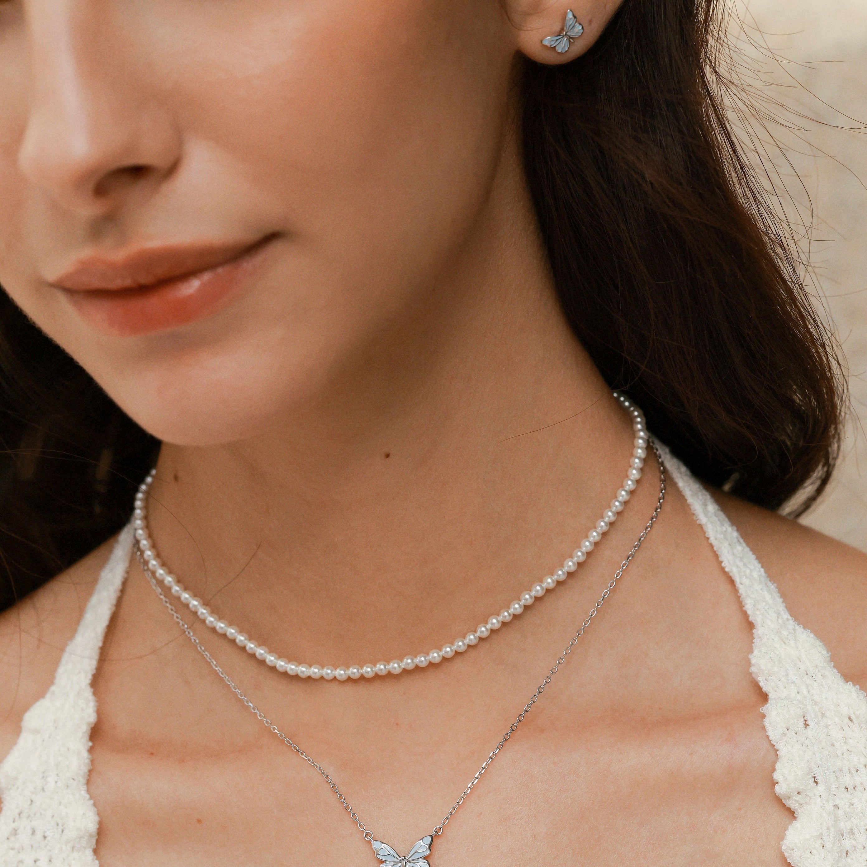 FANCIME “Pearl Kiss“ Butterfly Bow Sterling Silver Necklace