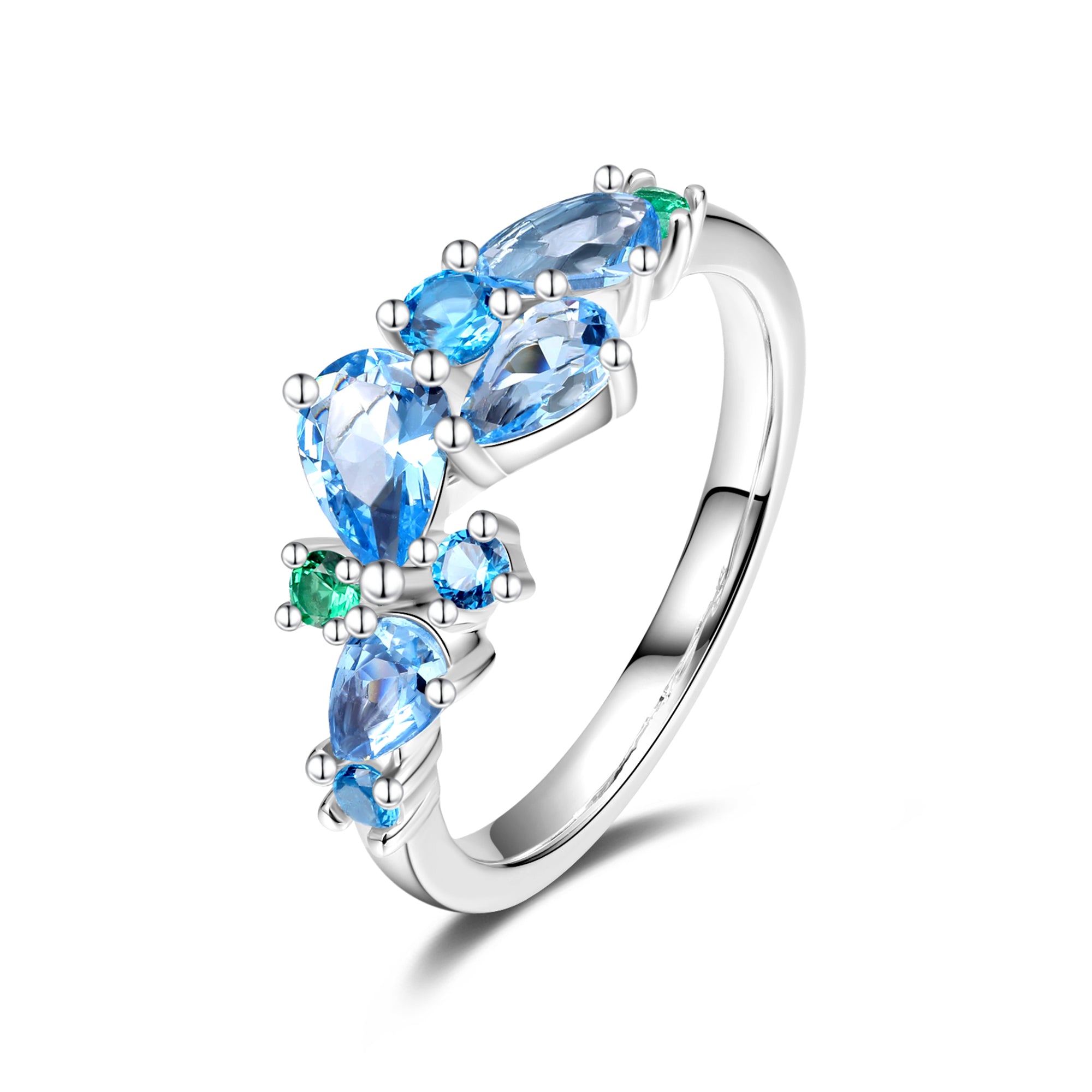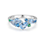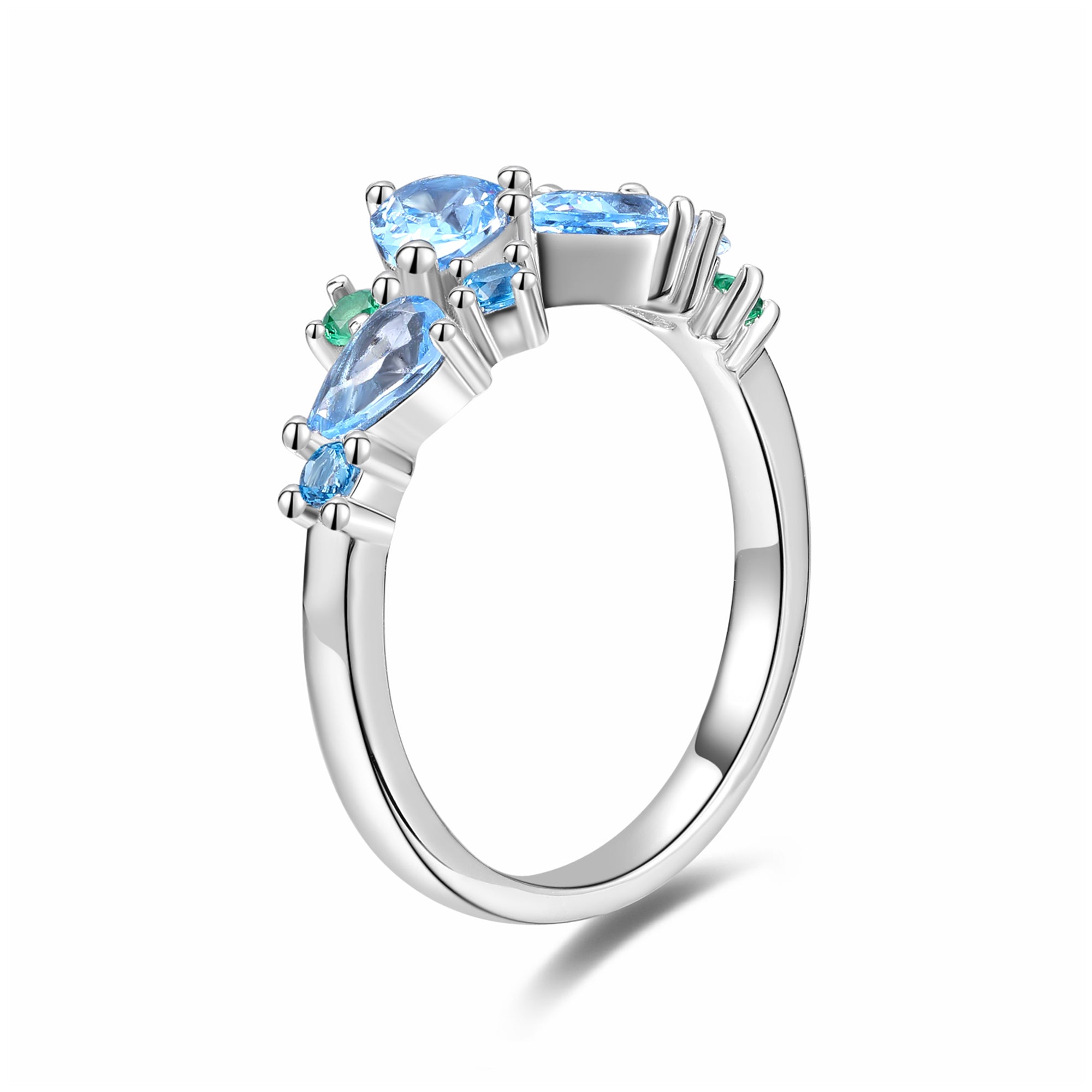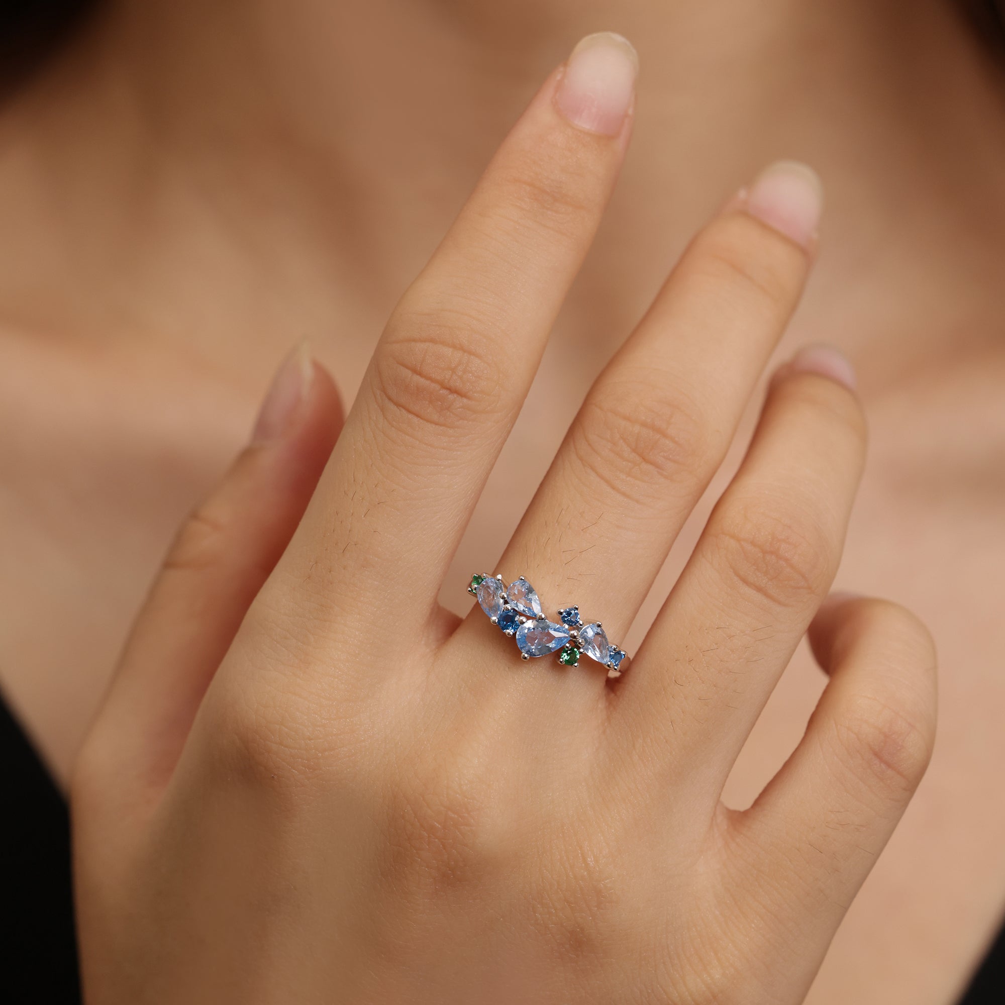 “Wisteria Whisper” Flower Bar Blue Topaz Silver Ring
