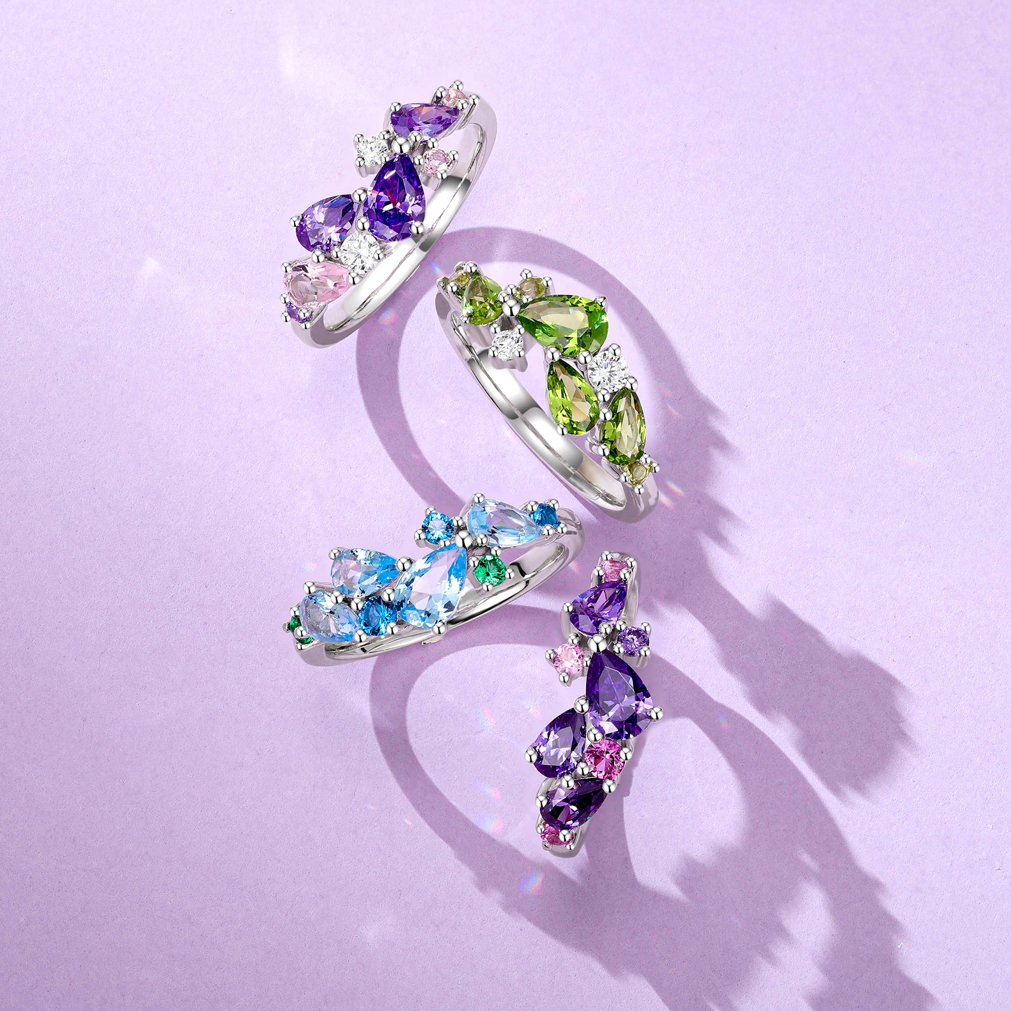 A floral smile nourishes your soul. People believe happiness comes when the Wisteria flower blooms. Wisteria flower is a purple flower symbolizing romance in most cultures. It is a climbing plant that represents the feelings of reluctance between lovers, and the bond between each other.Our jewelry designs follow the femininity of the flower as it sways in the breeze, like an elegant lady swings in her satin silk dress.