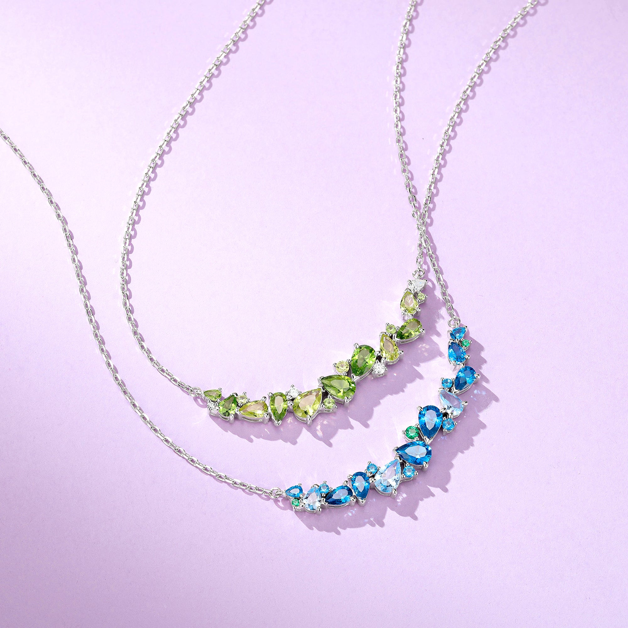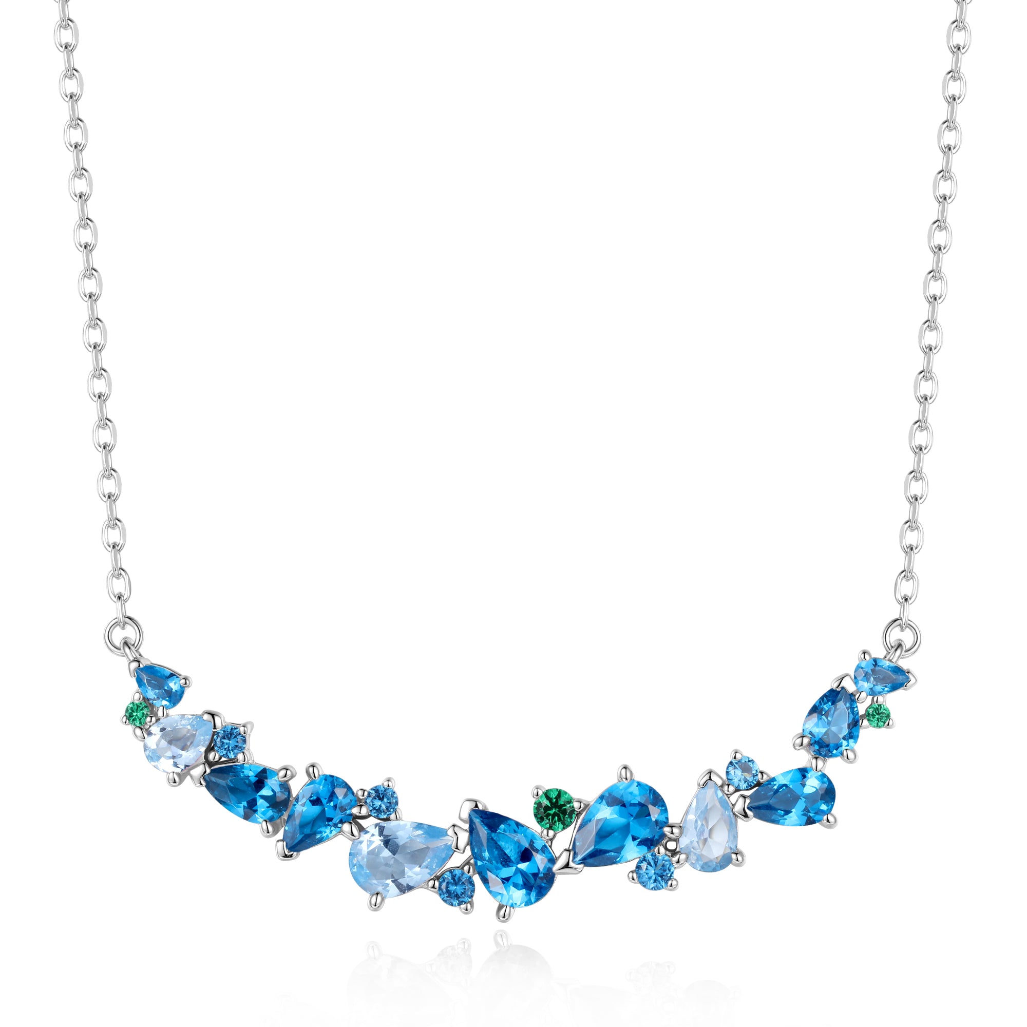 “Wisteria Whisper” Flower Bar Blue Topaz Silver Necklace