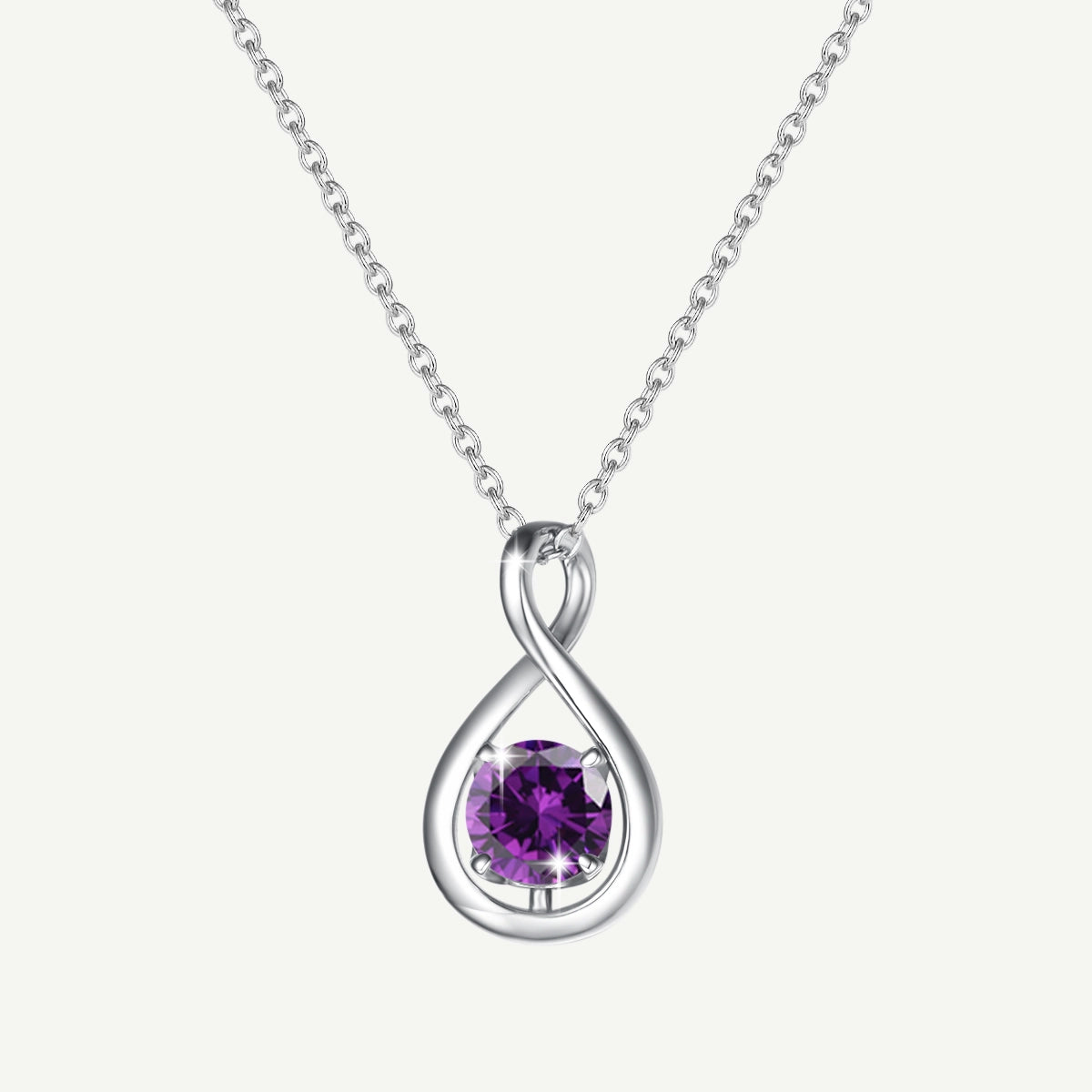 "Infinite Embrace" February Birthstone Amethyst Infinity Symbol Sterling Silver Pendant Necklace