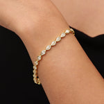 Expertly crafted from hypoallergenic sterling silver and available in luxurious white and yellow gold tones, this 7-inch bracelet offers comfort and refined glamour for everyday wear. A thoughtful and elegant gift for yourself or a loved one.