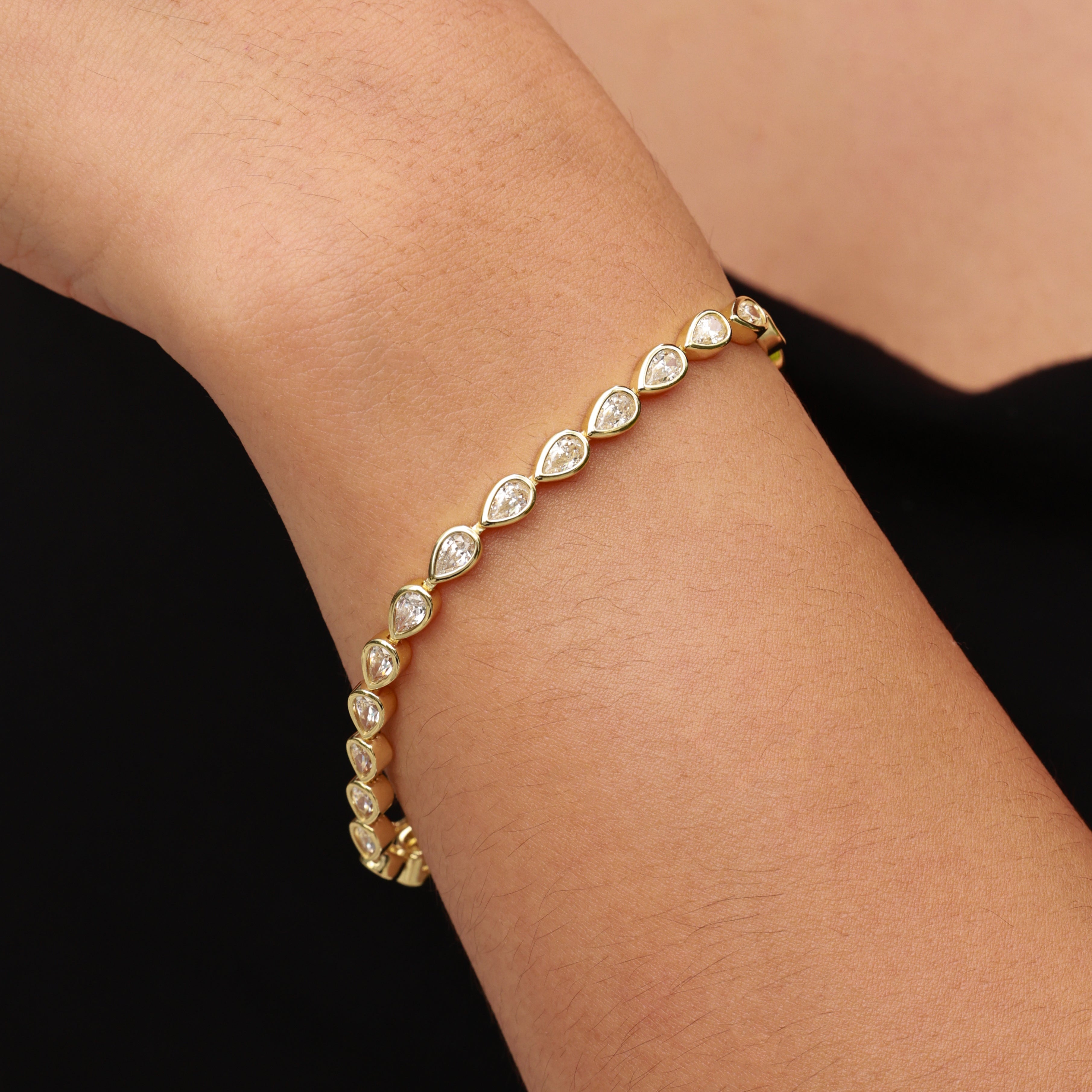 Inspired by the delicate beauty of a single tear, Tearline combines emotional elegance with a timeless design. Featuring high-quality pear-shaped cubic zirconia stones sparkling along a graceful sterling silver line, it captures light, memories, and meaning.