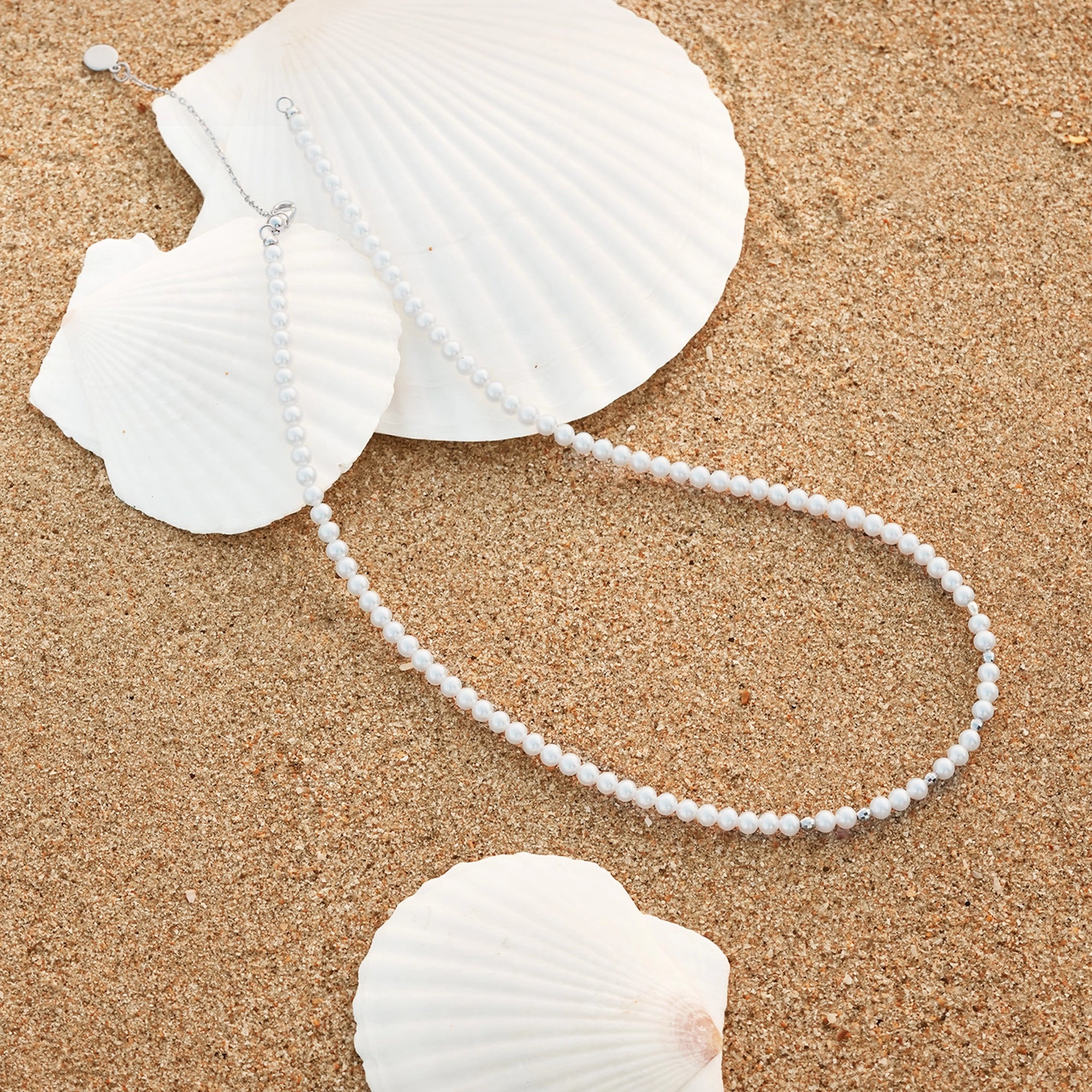 Inspired by the gentle glow of moonlight, this necklace pairs luminous freshwater pearls with faceted silver beads in a graceful rhythm. Each pearl is naturally round and full, radiating a soft ivory sheen that symbolizes purity and timeless elegance. The silver accents catch the light like scattered stars, creating a delicate interplay between moon and sparkle. A tribute to nature’s quiet beauty, this piece celebrates the harmony of simplicity, romance, and refined connection.