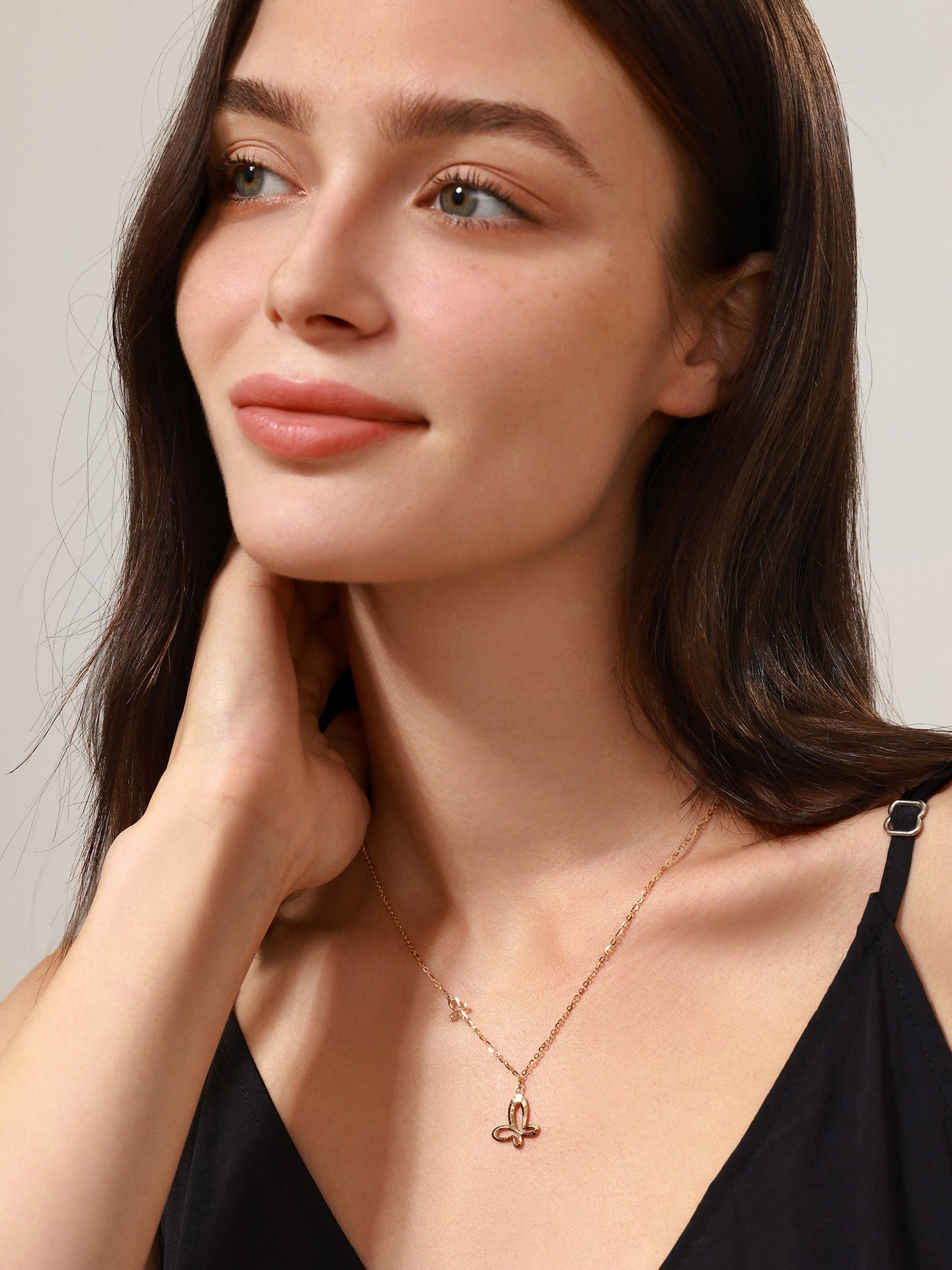 FANCIME "Golden Kiss" Butterfly 14K Yellow Gold Necklace