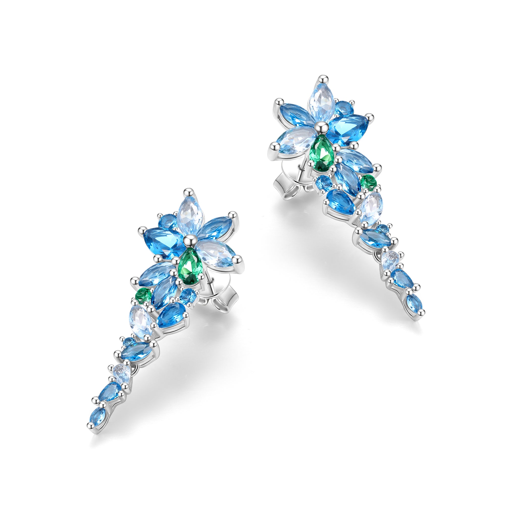 「ウィステリア・ウィスパー」フラワーバー ブルートパーズ シルバーイヤリング