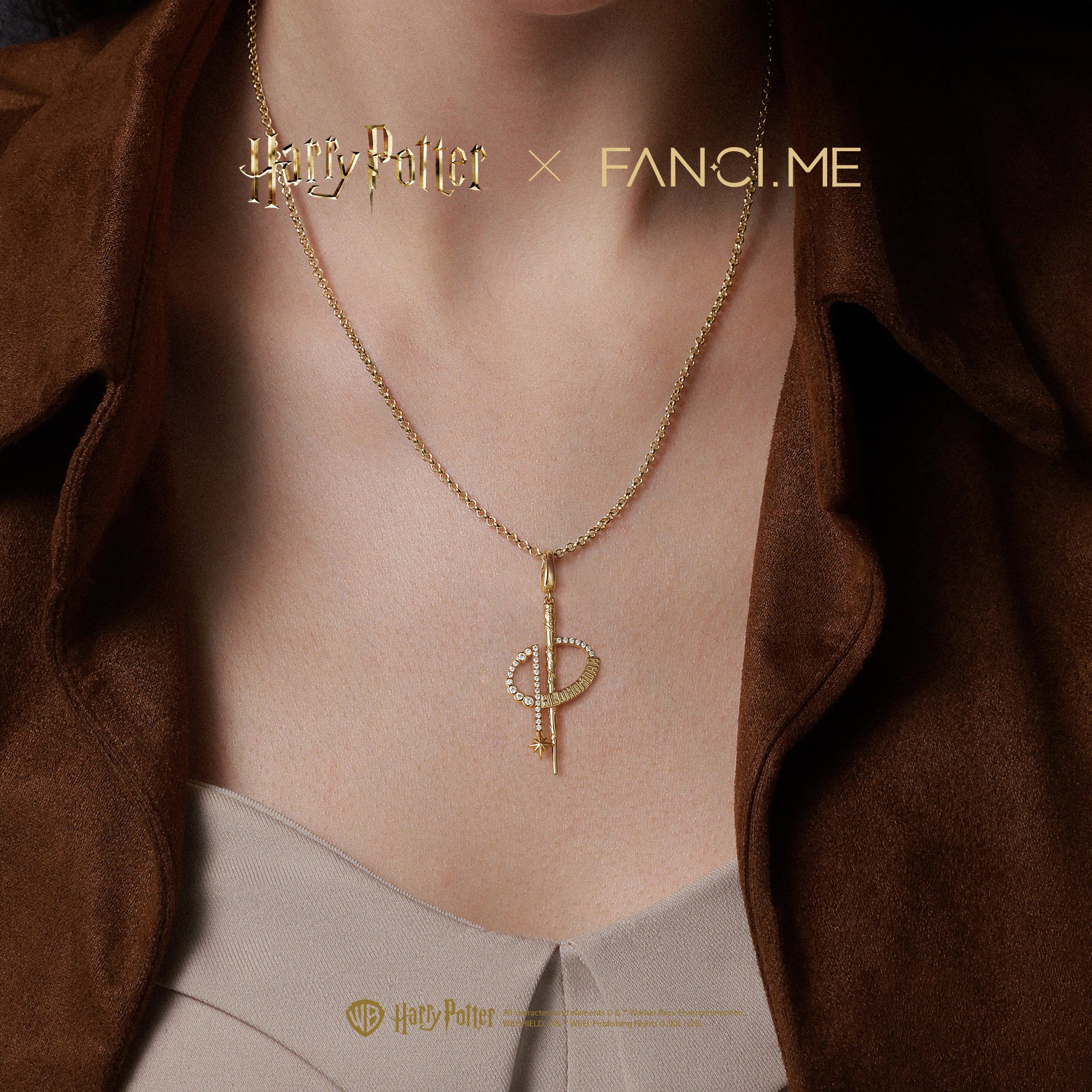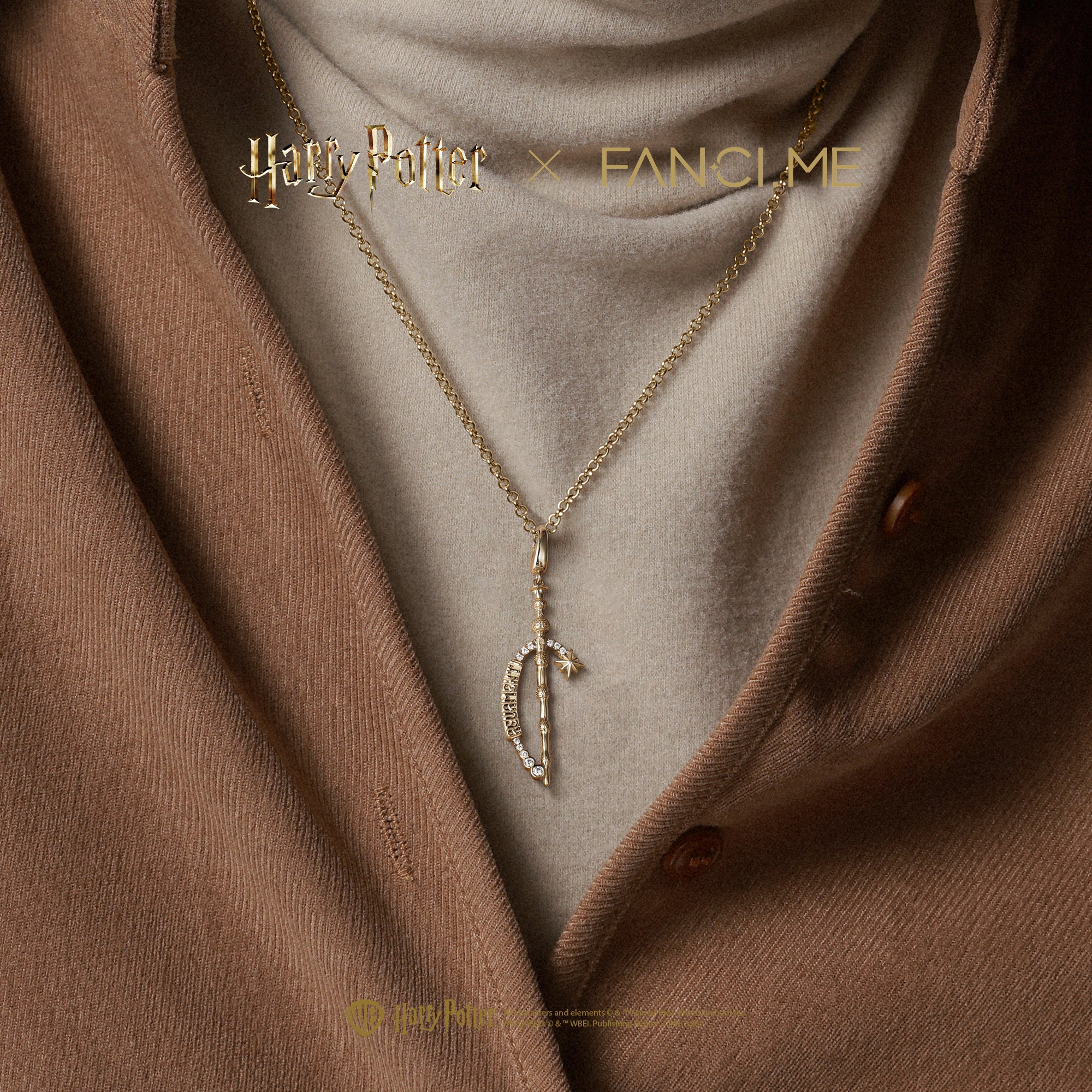 Harry Potter x FANCIME Harry Potter Wand Charm Necklaces, Gold
