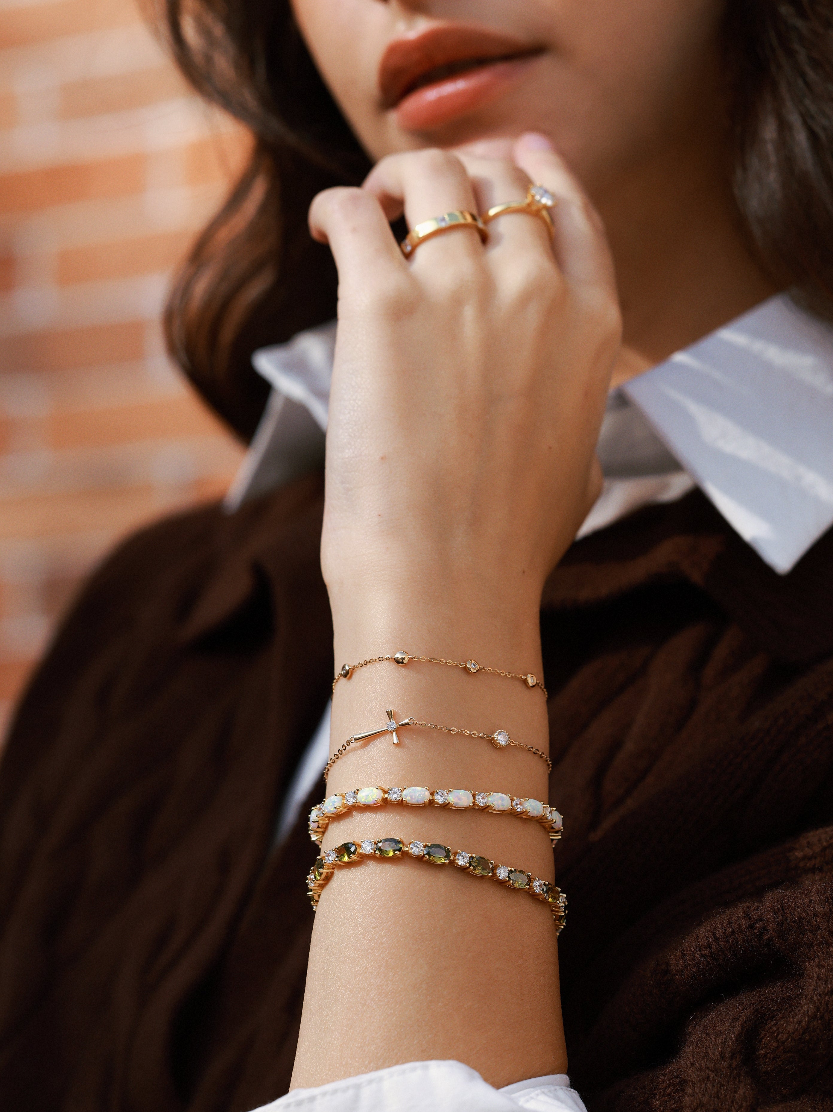 「グラマー ラディアンス」10月の誕生石オパール スターリングシルバー テニスブレスレット クラシック ボロチェーン