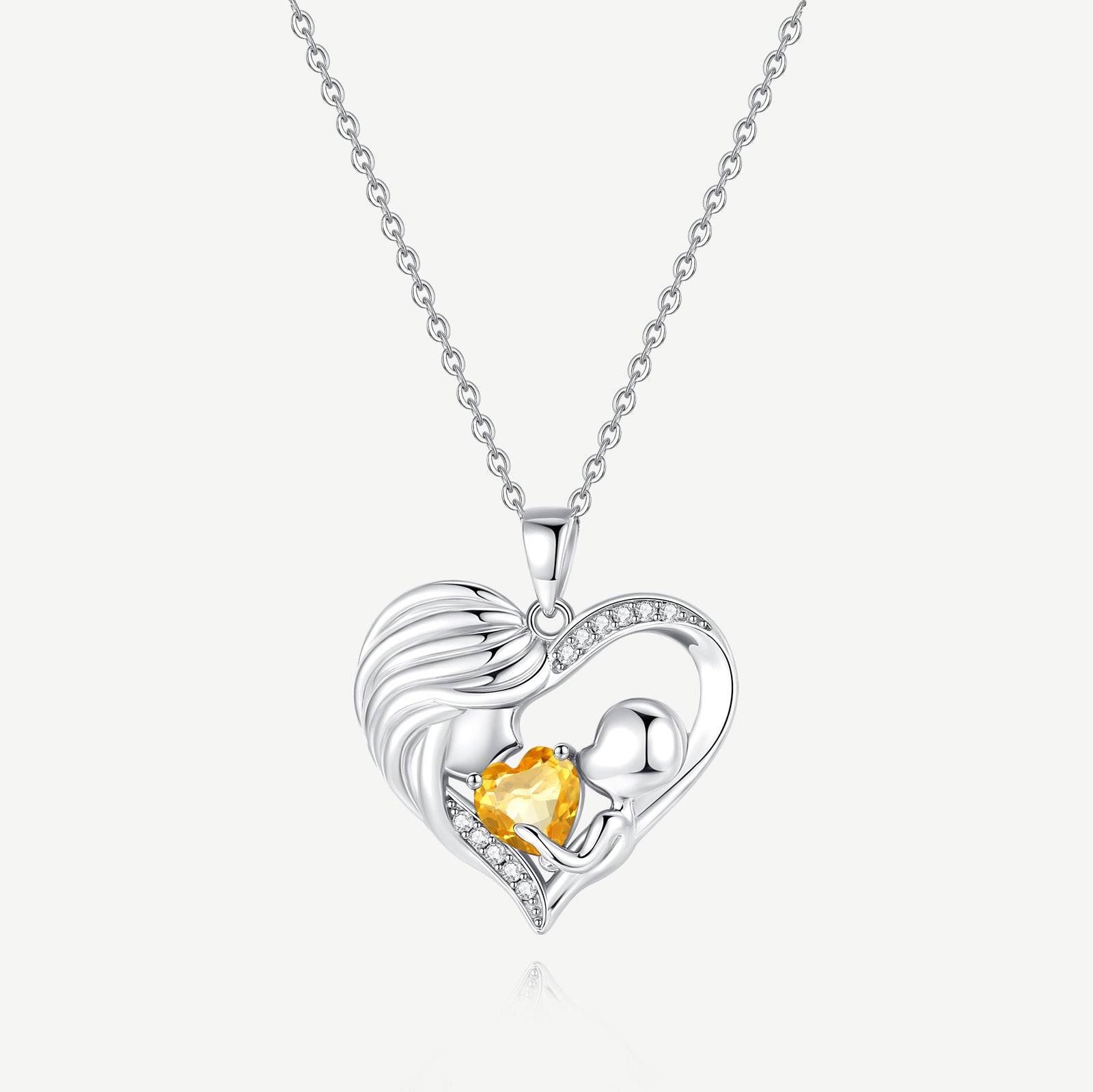 Mother and Child Love Heart Necklace in Sterling Silver with Citrine