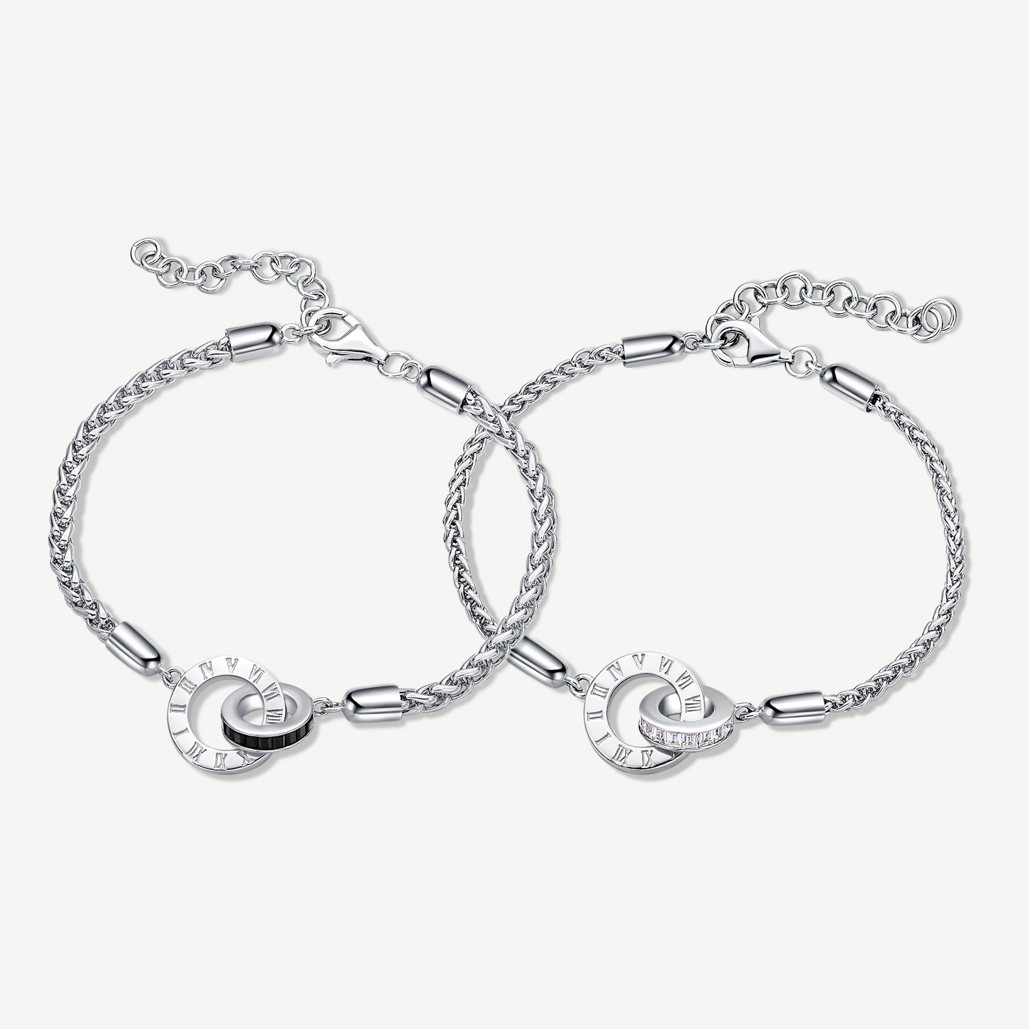 FANCIME「ローマンタイム」インターロッキングサークルカップルスターリングシルバーウィートチェーンブレスレット