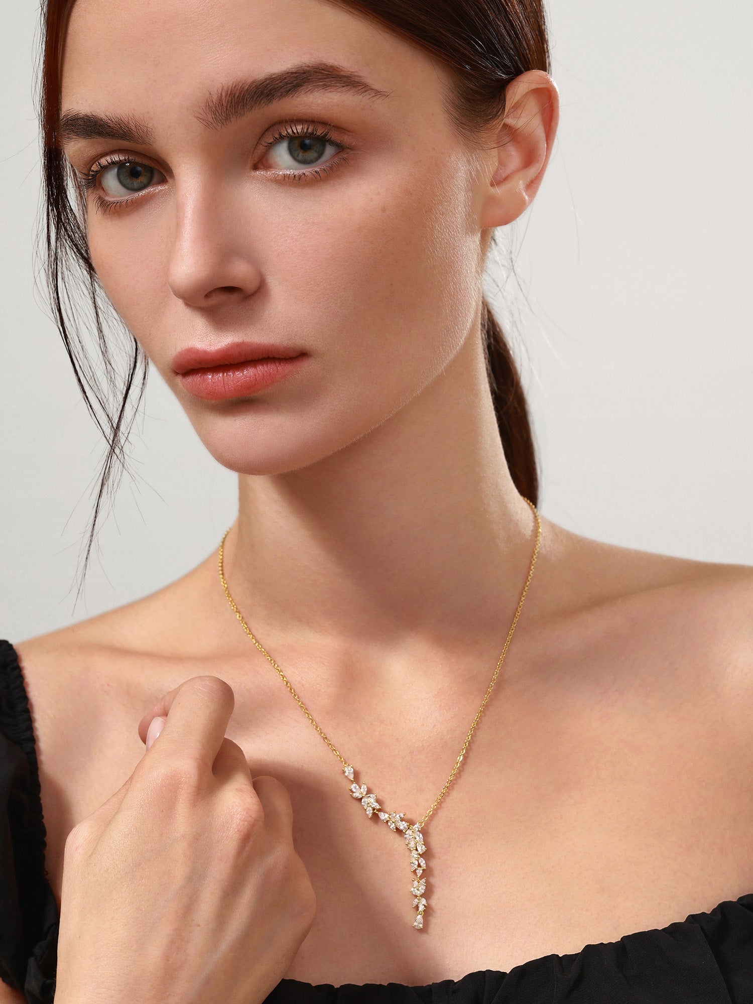 FANCIME "Wisteria Whisper" Flower Drop Y Sterling Silver Necklace