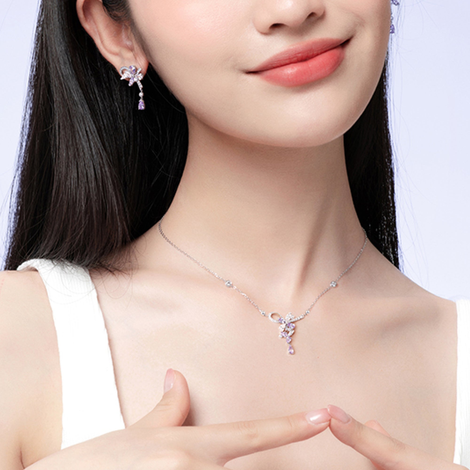 Inspired by the gentle beauty of wisteria in full bloom, this piece celebrates soft lines and flowing forms that move effortlessly.
